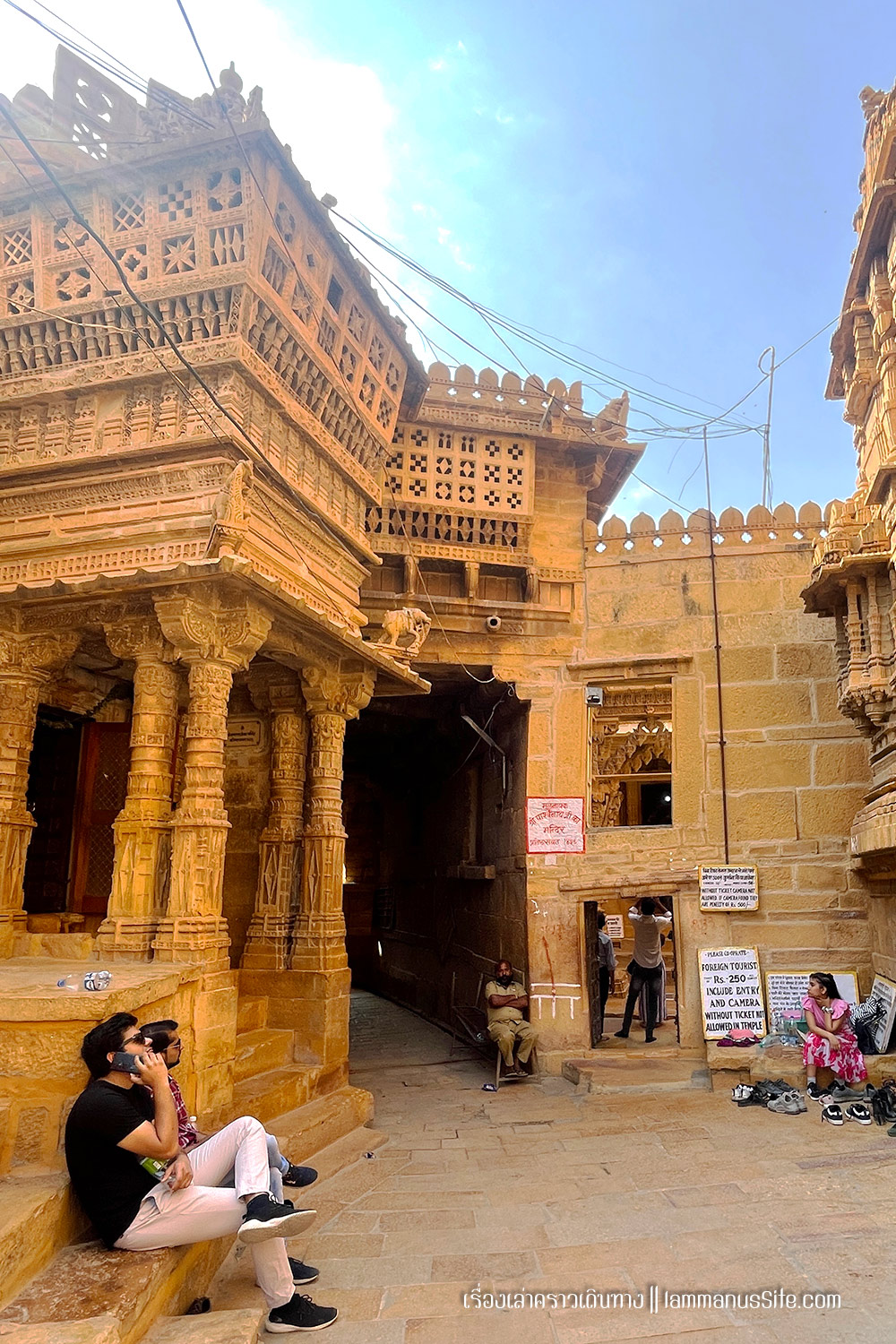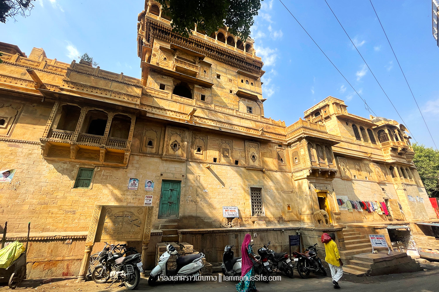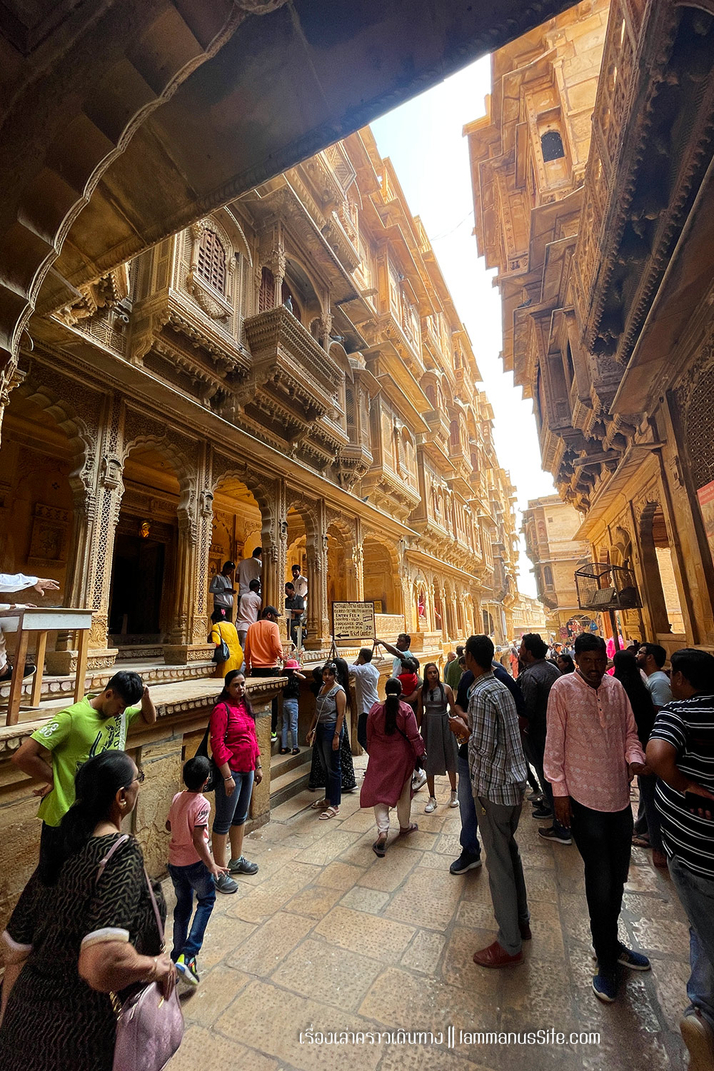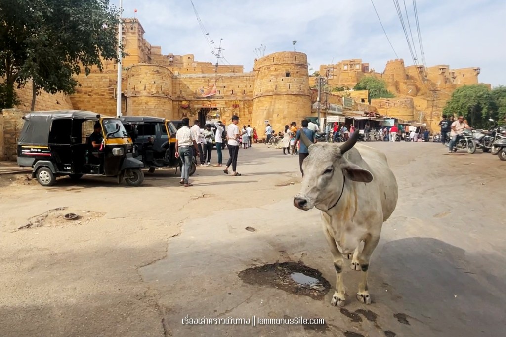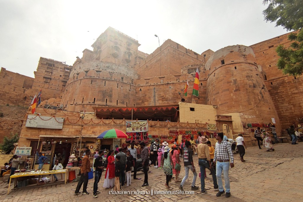 Jaisalmer Fort ป้อมปราการจัยซัลแมร์ ทุกเมืองในราชาสถานจะมีป้อมปราการที่มหาราชา มหารานา สร้างไว้ ปัจจุบันก็กลายเป็นสถานที่ท่องเที่ยวไปหมดแล้ว แต่ที่จัยซัลแมร์นี่แปลกแตกต่างจากป้อมปราการเมืองอื่นๆ ตรงที่เป็นป้อมที่ยังมีชีวิต คือเดินผ่านประตูเมืองเข้าป้อมไปไม่ต้องเสียเงินเลย เพราะว่าภายในป้อมมีคนอยู่อาศัย เป็นบ้าน เป็นร้านค้า ร้านอาหาร เป็นที่พัก เป็นวัด เหมือนหมู่บ้านในป้อมปราการ ส่วนที่ต้องจ่ายเงินเข้าไปเยี่ยมชมก็จะเป็นพิพิธภัณฑ์ หรือวัด ถ้าไม่เข้าเลยก็ไม่เสียเงินเลย เข้าไปเดินเล่นดูผู้คนได้ทั้งวันทั้งคืน ถ้าจะเสียเงินก็เป็นค่าอาหารเครื่องดื่มตามร้านอาหารที่มีจุดชมวิวสวยๆ มีหลายร้านมากๆ | อ่านเรื่องร้านอาหารในราชาสถาน |