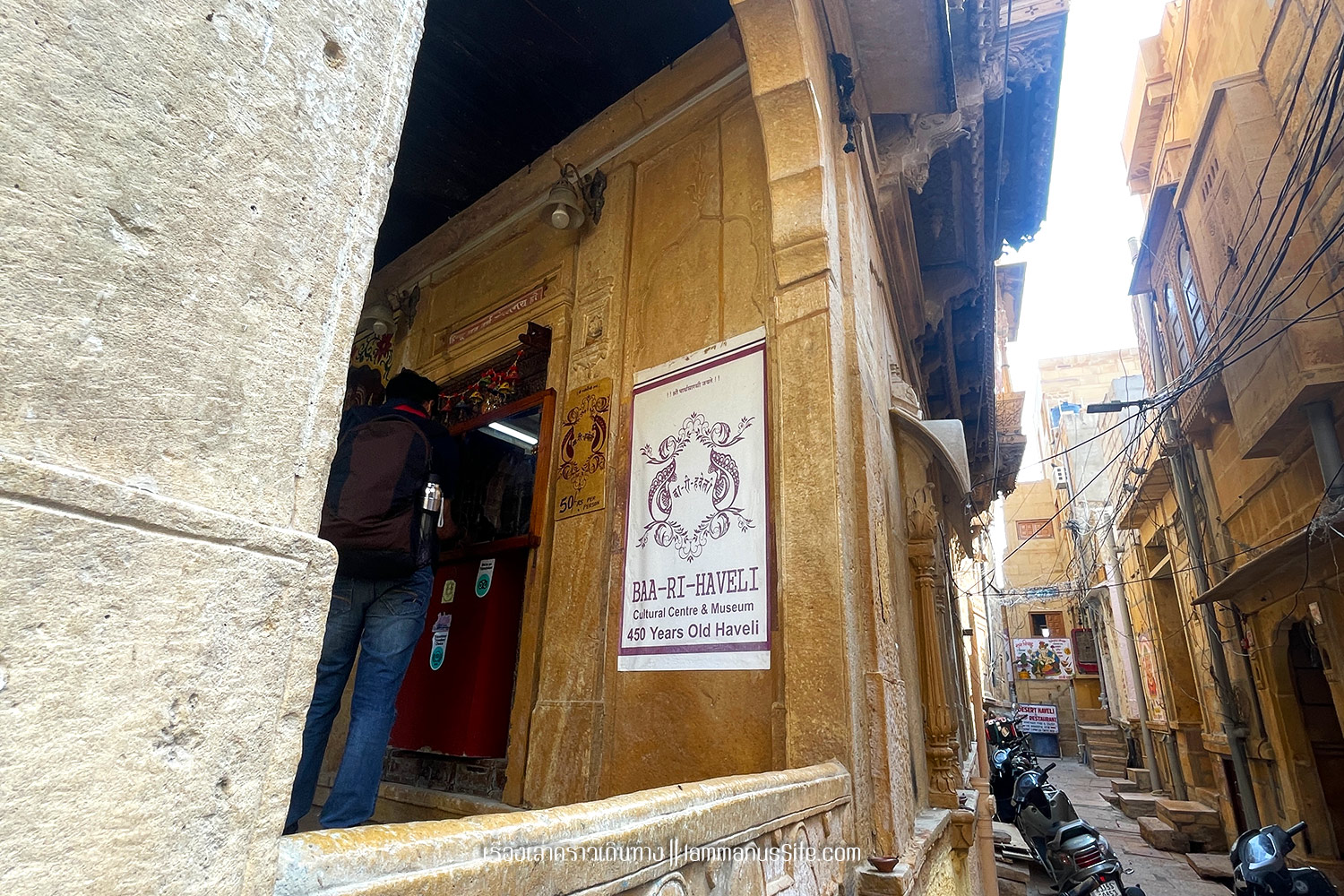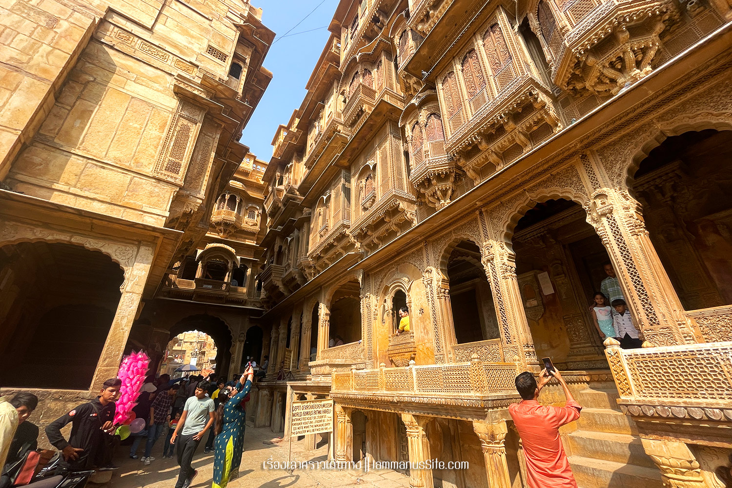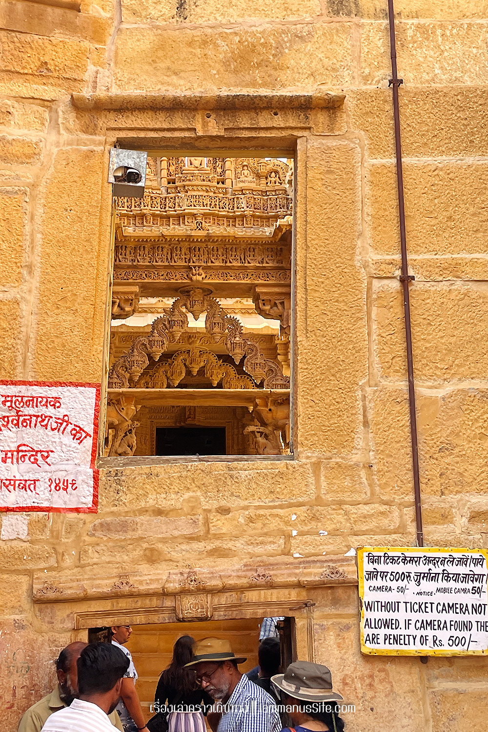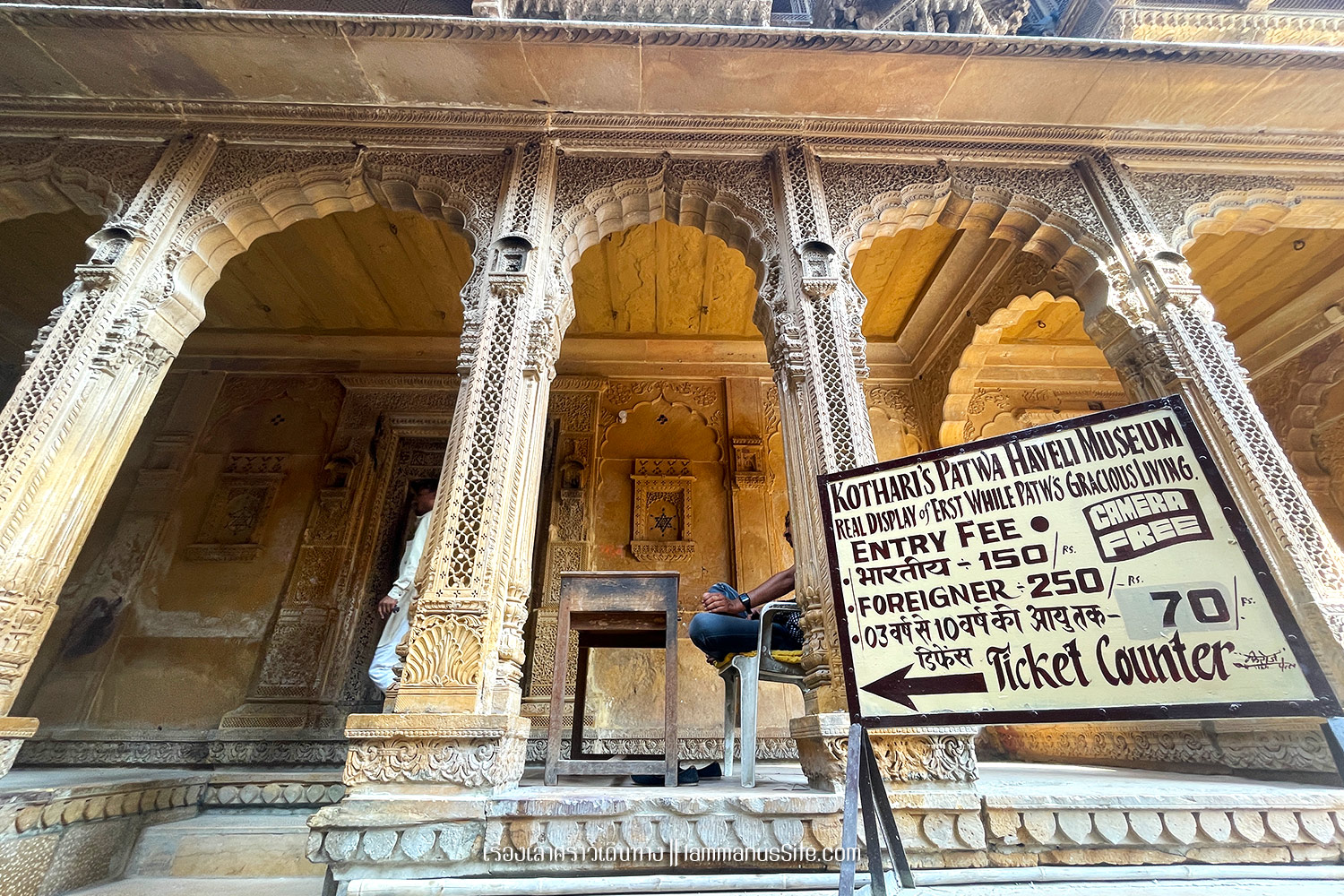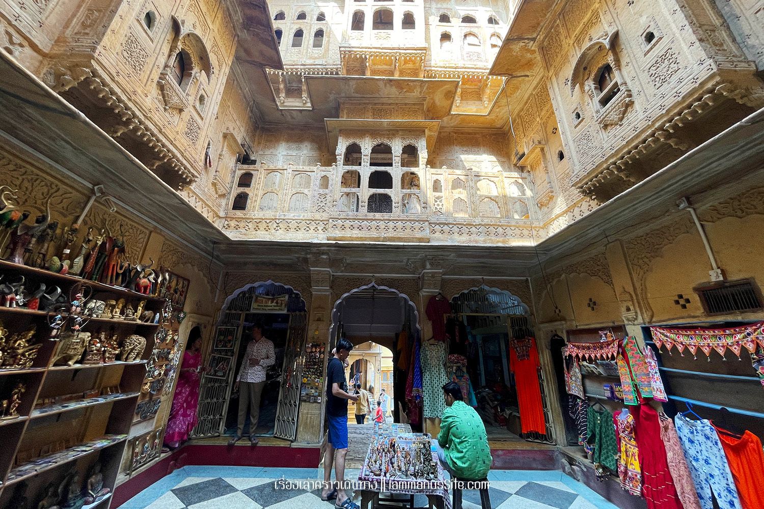Jaisalmer Fort ป้อมปราการจัยซัลแมร์ ทุกเมืองในราชาสถานจะมีป้อมปราการที่มหาราชา มหารานา สร้างไว้ ปัจจุบันก็กลายเป็นสถานที่ท่องเที่ยวไปหมดแล้ว แต่ที่จัยซัลแมร์นี่แปลกแตกต่างจากป้อมปราการเมืองอื่นๆ ตรงที่เป็นป้อมที่ยังมีชีวิต คือเดินผ่านประตูเมืองเข้าป้อมไปไม่ต้องเสียเงินเลย เพราะว่าภายในป้อมมีคนอยู่อาศัย เป็นบ้าน เป็นร้านค้า ร้านอาหาร เป็นที่พัก เป็นวัด เหมือนหมู่บ้านในป้อมปราการ ส่วนที่ต้องจ่ายเงินเข้าไปเยี่ยมชมก็จะเป็นพิพิธภัณฑ์ หรือวัด ถ้าไม่เข้าเลยก็ไม่เสียเงินเลย เข้าไปเดินเล่นดูผู้คนได้ทั้งวันทั้งคืน ถ้าจะเสียเงินก็เป็นค่าอาหารเครื่องดื่มตามร้านอาหารที่มีจุดชมวิวสวยๆ มีหลายร้านมากๆ | อ่านเรื่องร้านอาหารในราชาสถาน |