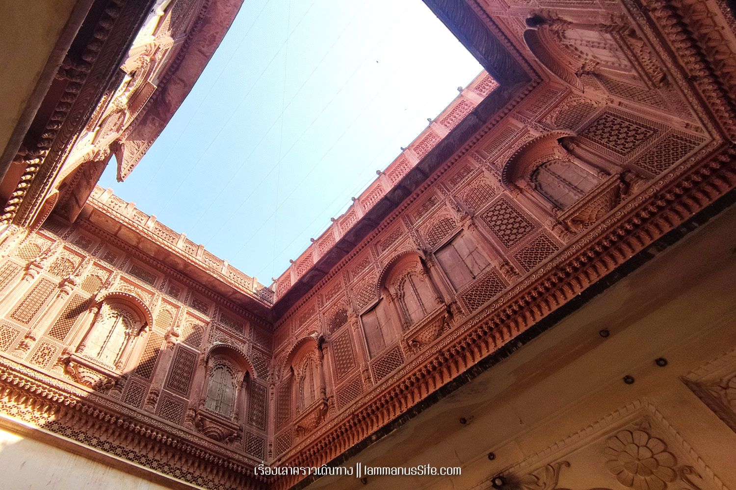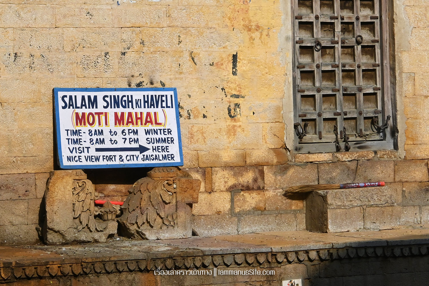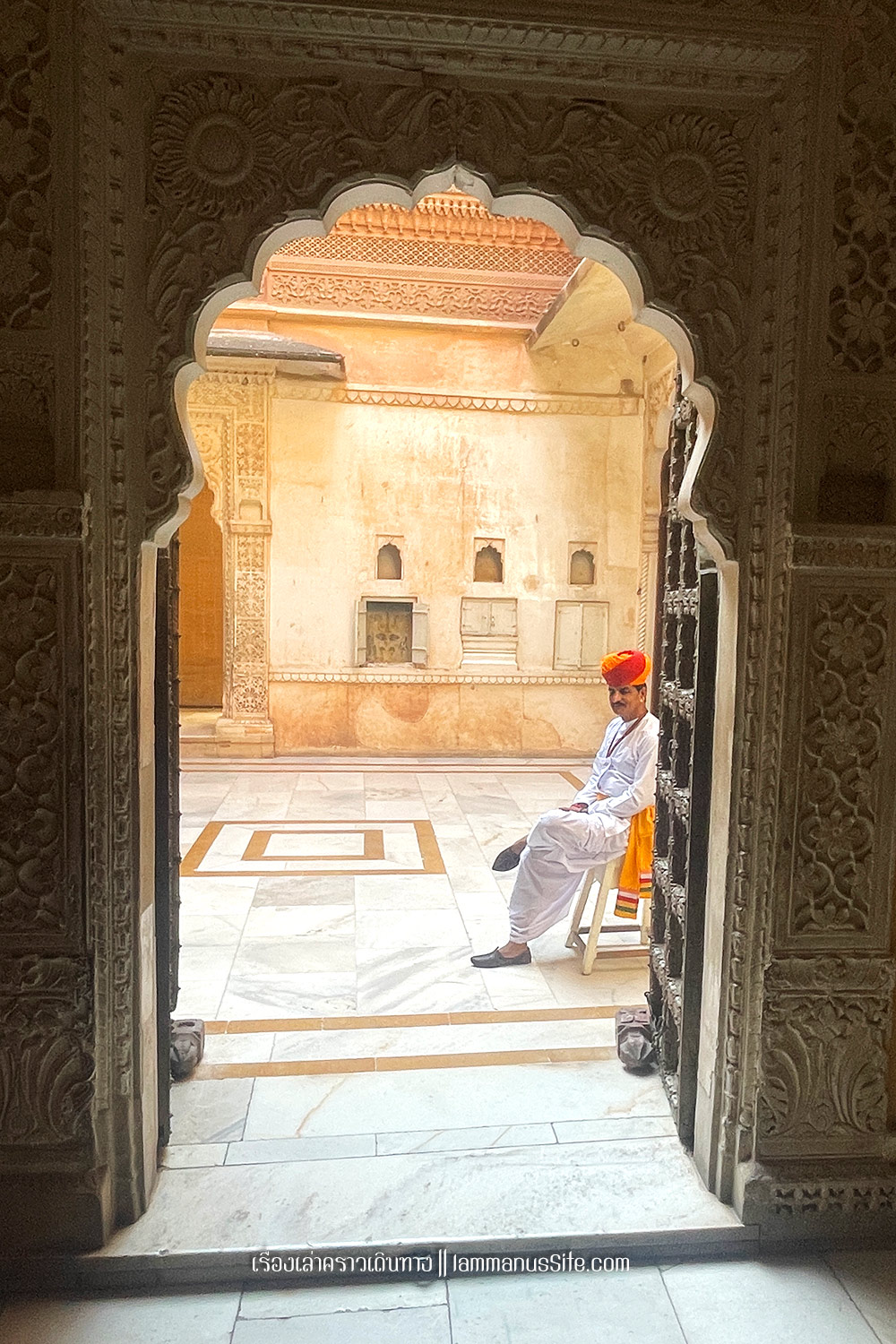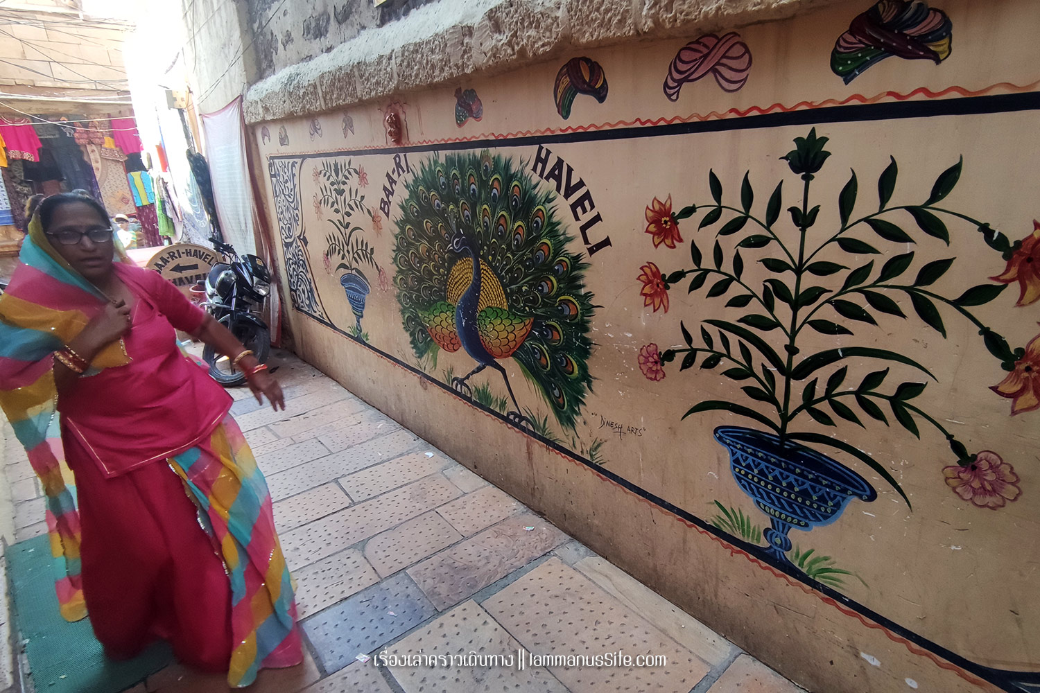 Jaisalmer Fort ป้อมปราการจัยซัลแมร์ ทุกเมืองในราชาสถานจะมีป้อมปราการที่มหาราชา มหารานา สร้างไว้ ปัจจุบันก็กลายเป็นสถานที่ท่องเที่ยวไปหมดแล้ว แต่ที่จัยซัลแมร์นี่แปลกแตกต่างจากป้อมปราการเมืองอื่นๆ ตรงที่เป็นป้อมที่ยังมีชีวิต คือเดินผ่านประตูเมืองเข้าป้อมไปไม่ต้องเสียเงินเลย เพราะว่าภายในป้อมมีคนอยู่อาศัย เป็นบ้าน เป็นร้านค้า ร้านอาหาร เป็นที่พัก เป็นวัด เหมือนหมู่บ้านในป้อมปราการ ส่วนที่ต้องจ่ายเงินเข้าไปเยี่ยมชมก็จะเป็นพิพิธภัณฑ์ หรือวัด ถ้าไม่เข้าเลยก็ไม่เสียเงินเลย เข้าไปเดินเล่นดูผู้คนได้ทั้งวันทั้งคืน ถ้าจะเสียเงินก็เป็นค่าอาหารเครื่องดื่มตามร้านอาหารที่มีจุดชมวิวสวยๆ มีหลายร้านมากๆ | อ่านเรื่องร้านอาหารในราชาสถาน |