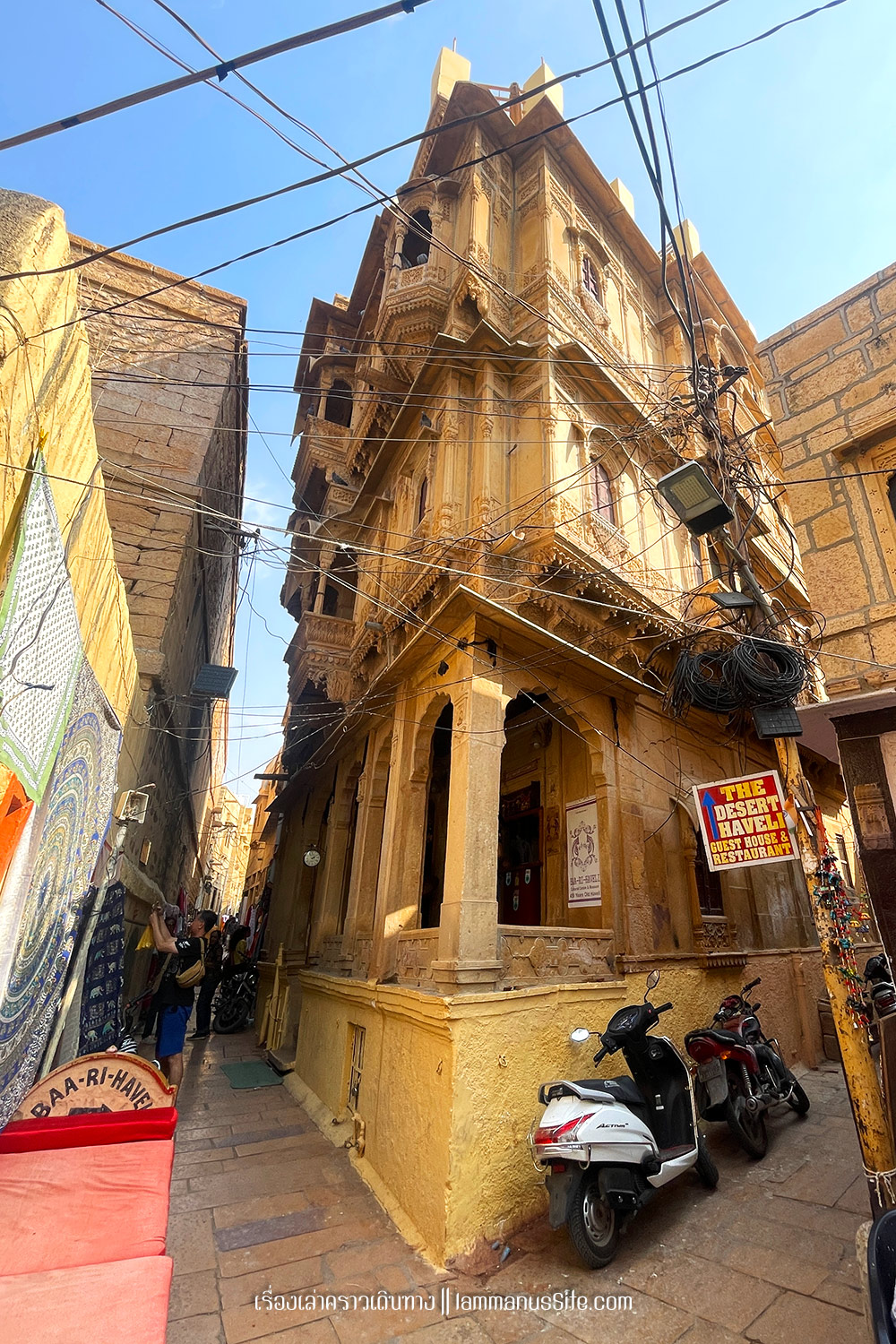Jaisalmer อ่านว่าจัยซัลแมร์ หรือ จัยซัลเมียร์ เสียงมันควบกล้ำฟังไพเราะเสนาะหูดี เมืองนี้ไม่มีใครตั้งชื่อไทยให้ เมืองอยู่ไกลไปทางตะวันตกเฉียงเหนือของแคว้น ห่างจากชายแดนปากีสถานแค่ 50 กม. เป็นเมืองทะเลทราย และมีฉายาว่า เมืองสีทอง | Golden city เพราะบ้านเรือนทำจากหินทรายสีเหลืองทอง สวยงามทั้งเมือง