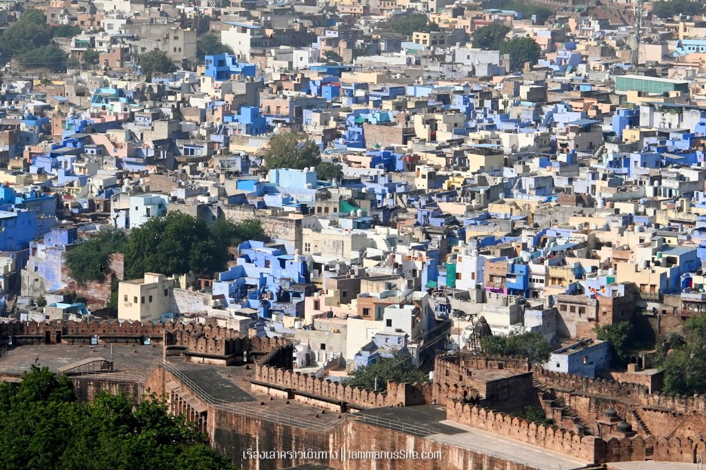 Jodhpur บางคนออกเสียงว่าจ๊อดปูร์ บางคนออกเสียงจู๊ดปูร์ คนไทยเลยตั้งชื่อให้เรียกง่ายๆว่า โยธะปุระ ได้ฉายาว่า เมืองสีฟ้า เพราะอาคารบ้านเรือนทาสีฟ้ากันหมด ที่มาที่ไปของสีฟ้ามีหลายเรื่องเล่า บ้างก็ว่าเพราะว่าชาวเมืองแต่ดั้งเดิมเป็นวรรณะพราห์ม ซึ่งชาวฮินดูเชื่อว่าสีฟ้าเป็นสีแห่งพระศิวะ จึงทาบ้านเรือนเป็นสีฟ้าเพื่อแสดงความเคารพ และใช้สีฟ้าบ่งบอกว่าชุมชนย่านนี้คือวรรณะพารห์ม แต่ก็มีเหตุผลทางวิทยาศาสตร์อยู่ด้วยคือ จ๊อดปูร์เป็นเมืองในแถบทะเลทรายอากาศร้อนเป็นส่วนใหญ่ สีฟ้าเป็นสีเย็น จึงเหมาะแก่การใช้สีฟ้า แถมด้วยส่วนผสมของสีฟ้าคือ Copper sulfate ซึ่งช่วยกันแมลง กันปลวก ได้อีกด้วย ก็น่าจะหลายๆเหตุผลผสมผสานกันมาอย่างยาวนานนับร้อยปี และยังนิยมทาสีฟ้ากันอยู่จนถึงตอนนี้