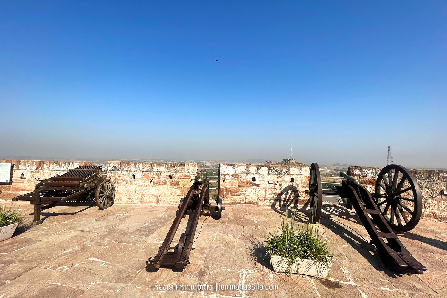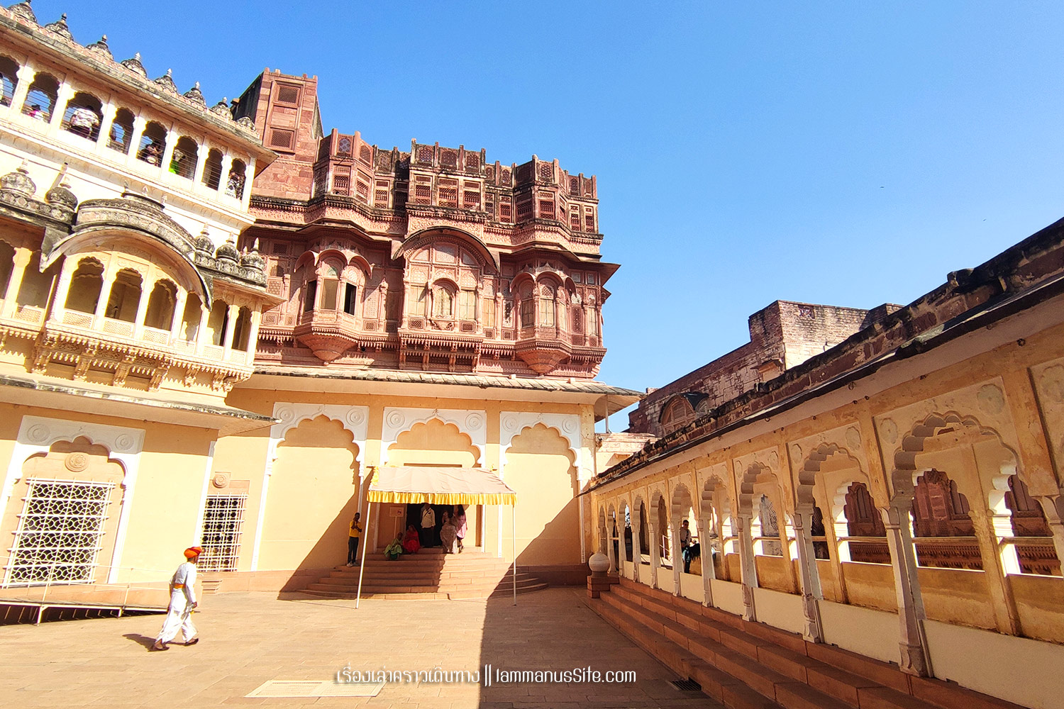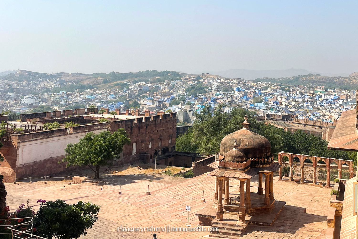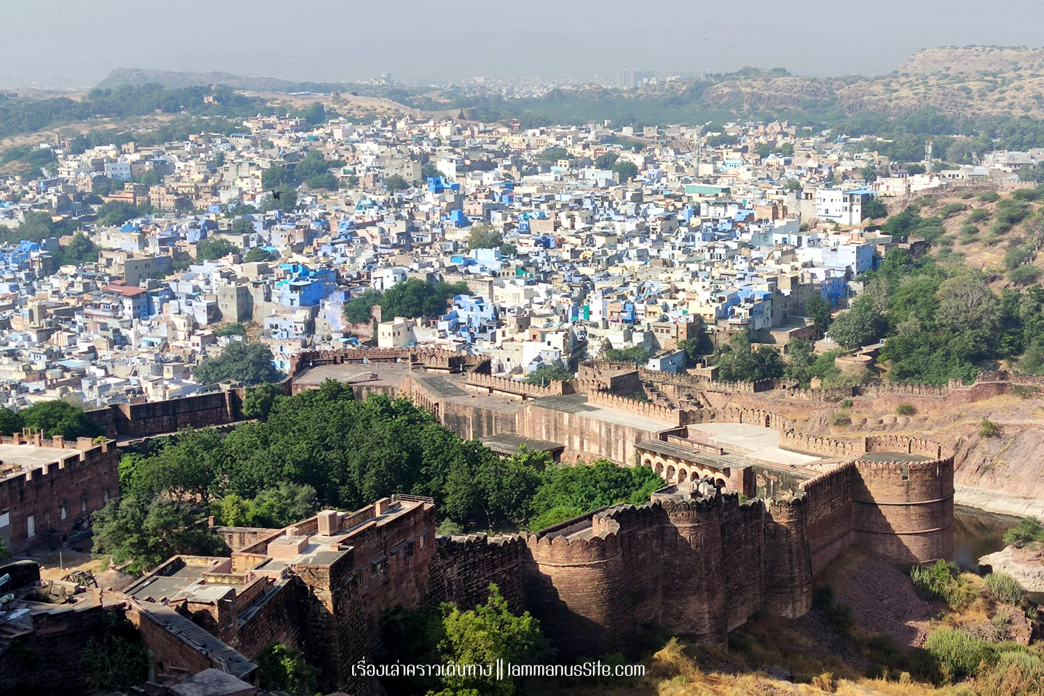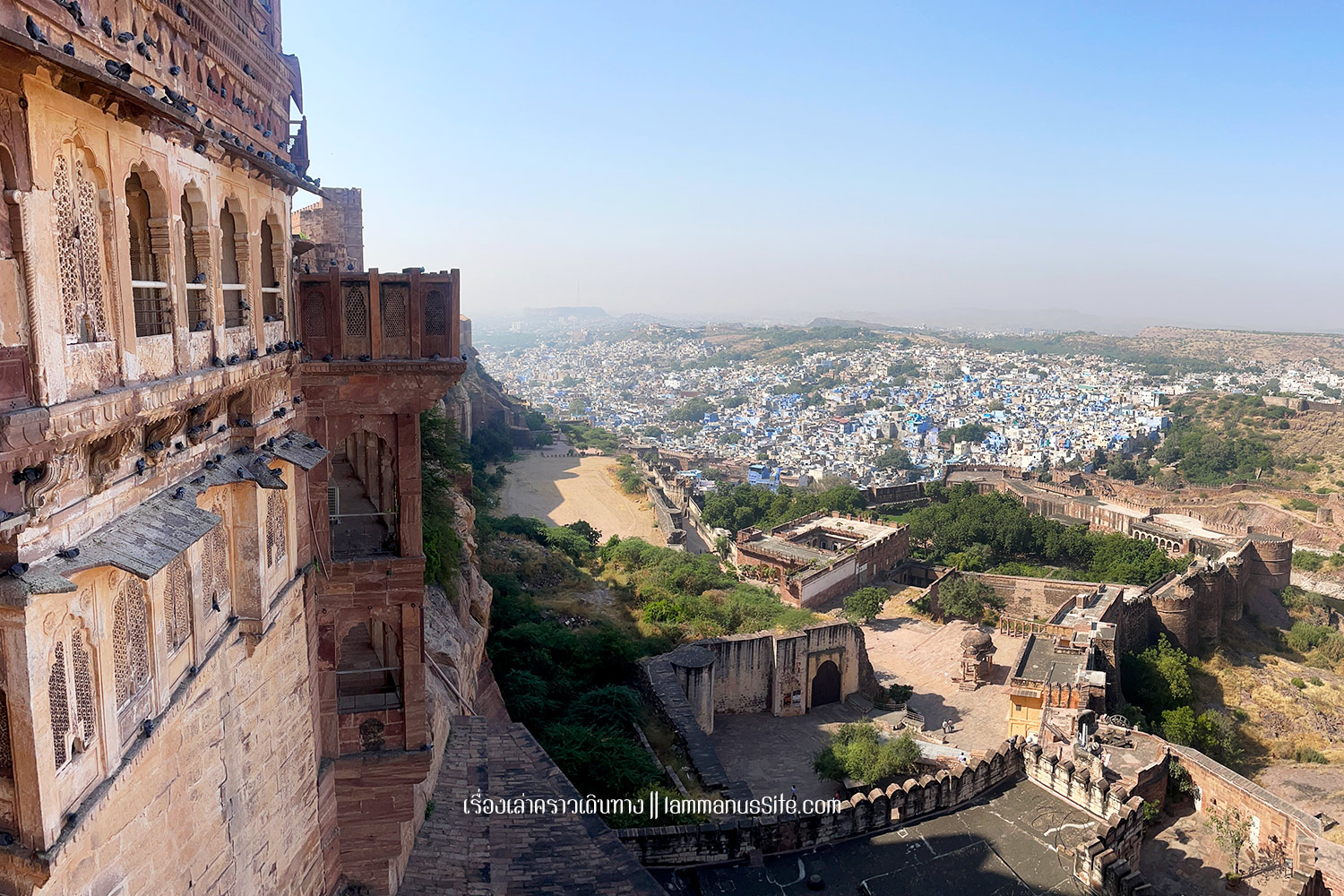 Mehrangarh Fort เมื่อมาถึงจ๊อดปูร์ แทบทุกคนต้องไปเที่ยวป้อมปราการขนาดใหญ่บนเนินเขา ที่มีแนวกำแพงยาว 15 กม. สร้างขึ้นโดยมหาราชาราวจ๊อด (Maharaja Rao Jodha) ในปี 1459 ตอนที่รวบรวมแผ่นดินคืนได้จากพวกกบฏ จึงมาสร้างวังในป้อมปราการบนยอดเขาเพื่อความมั่นคงปลอดภัย ปัจจุบันเปิดให้เข้าไปเที่ยวชมได้