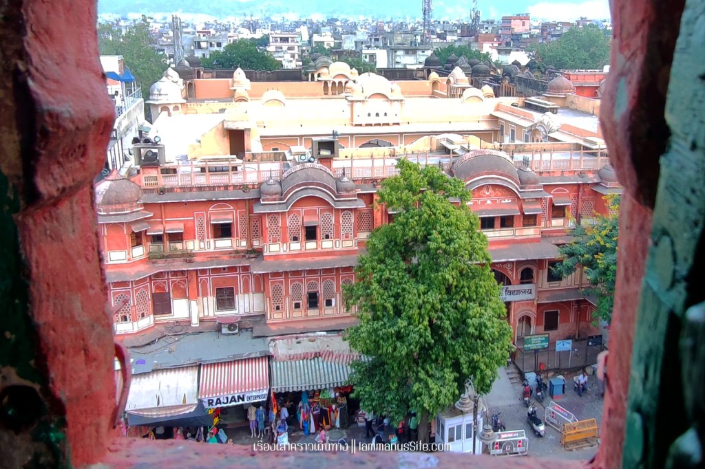 Jaipur | ไจปูร์ ไทยตั้งชื่อให้ว่า ชัยปุระ ปูร์หรือปุระ ความหมายเดียวกับ บุรี ของไทย เมืองไจปูร์ได้ฉายาว่าเมืองสีชมพู | Pink City เพราะบ้านเรือนทาสีส้มอมชมพูสวยหวานไปทั้งเมือง ตามประวัติเล่าว่า สมัยที่อินเดียยังเป็นอาณานิคมของอังกฤษ มหาราชาไสวรามซิงห์ที่ 2 (Sawai Ram Singh II) สั่งให้ทาสีอาคารบ้านเรือนในเมืองให้เป็นสีชมพูสดใสสวยงาม เพื่อต้อนรับเจ้าชายเอ็ดเวิร์ด เจ้าชายแห่งเวลส์ที่เสด็จเยือนเมืองไจปูร์ จากนั้นก็คงความเป็นสีชมพูเรื่อยมาจนมีการออกกฏหมาย ให้บ้านเรือนในเขตเมืองเก่าทาสีชมพูเท่านั้น ก็เลบยังคงเป็นเมืองสีชมพูมาร้อยกว่าปี กลายเป็นเอกลักษณ์ของไจปูร์ไปแล้ว