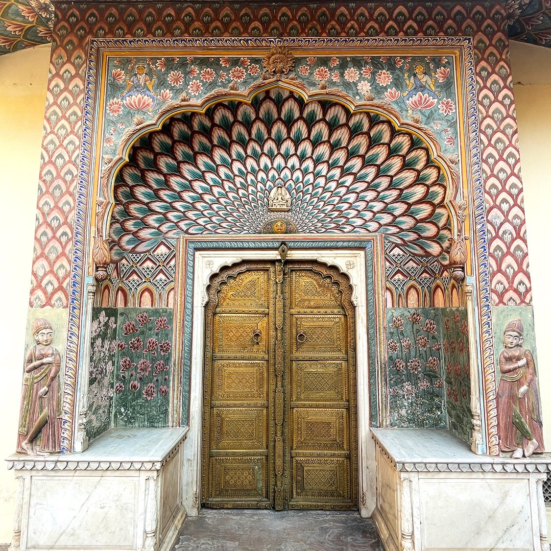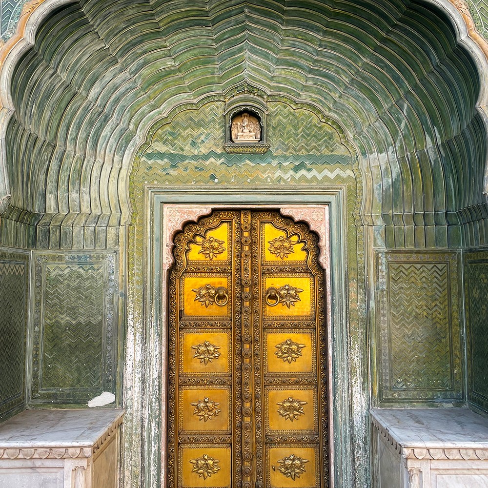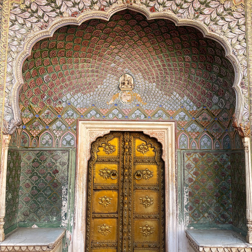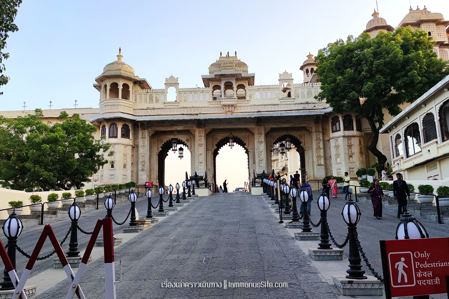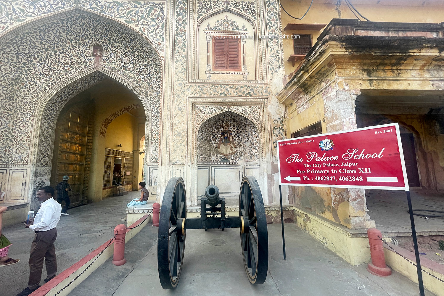 City Palace of Jaipur | พระราชวังหลวงแห่งไจปูร์ สร้างขึ้นเมื่อ ค.ศ.1797 สมัย มหาราชาสไวจัยซิงห์ ที่ 2 (Maharaja Sawai Man Singh II) แม้มหาราชาจะหมดอำนาจแล้ว แต่ City palace ก็ยังเป็นสมบัติส่วนพระองค์ ปัจจุบันก็ยังมีส่วนพื้นที่อยู่อาศัยส่วนตัว แต่ก็เปิดพื้นที่หลายส่วนให้เข้าชม เก็บค่าเข้าเป็นรายได้เข้าทรัพย์สินส่วนพระองค์ นอกจากค่าเข้าราคาปกติแล้ว ยังมีพื้นที่ส่วนพิเศษที่ต้องจ่ายเงินเพิ่ม 3,500 รูปี เกือบ 2000 บาท เพื่อเข้าไปดูพื้นที่พิเศษ (รู่สึกว่าแพงจัง เลยไม่เข้า)