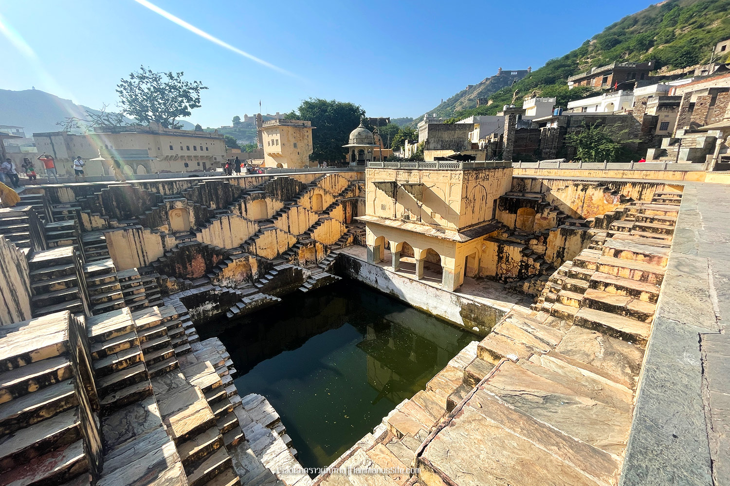 Panna Meena Ka Kund บ่อน้ำโบราณ สร้างเพื่อไว้กักเก็บน้ำไว้ใช้และเอาไว้ประกอบพิธีศักดิ์สิทธิ์ต่างๆ สร้างบันไดรอบบ่อไว้สำหรับเดินลงไปตักน้ำได้ ไม่มีค่าเข้าชม แต่ห้ามเดินลงบันได (มีหลายรีวิวมาช่วงไม่มีคน จะมียามมากระซิบถามว่าอยากลงมั๊ย ให้ทิปไปเล็กน้อยสัก 100-200 รูปี ก็ลงไปได้นะ)