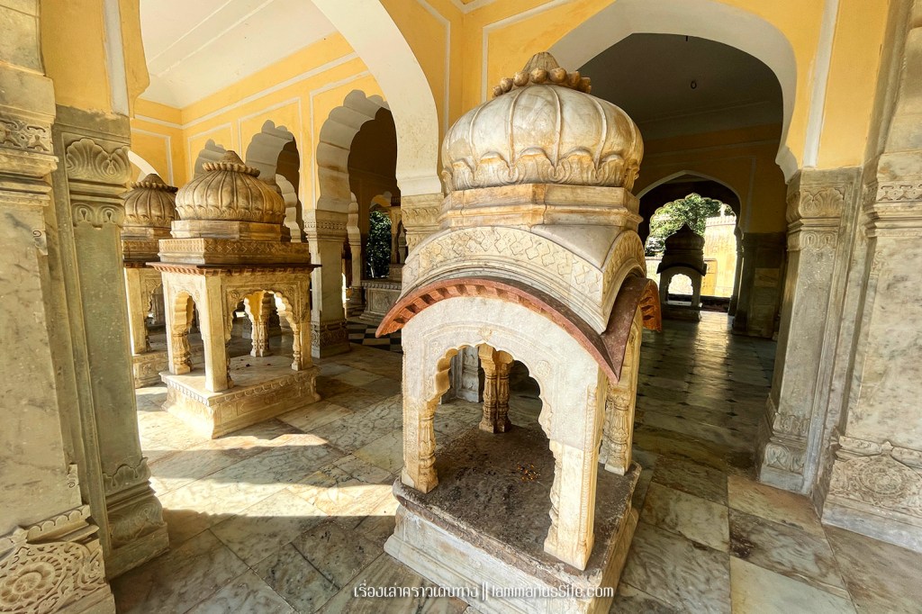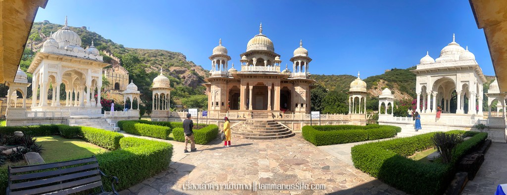 Gatore Ki Chhatriyan เป็นสุสานที่สร้างโดยมหาราชาผู้เคยปกครอง Jaipur มีศาลายอดโดมสร้างจากหินอ่อนกับหินทรายอยู่หลายศาลา พื้นที่กว้างมาก มี 3 ส่วน เดินเข้าไปดูได้หมด ด้านข้างอยู่ชิดติดแนวกำแพงที่สร้างตามแนวสันเขา อารมณ์เหมือนกำแพงเมืองจีนเดินขึ้นไปเที่ยวได้