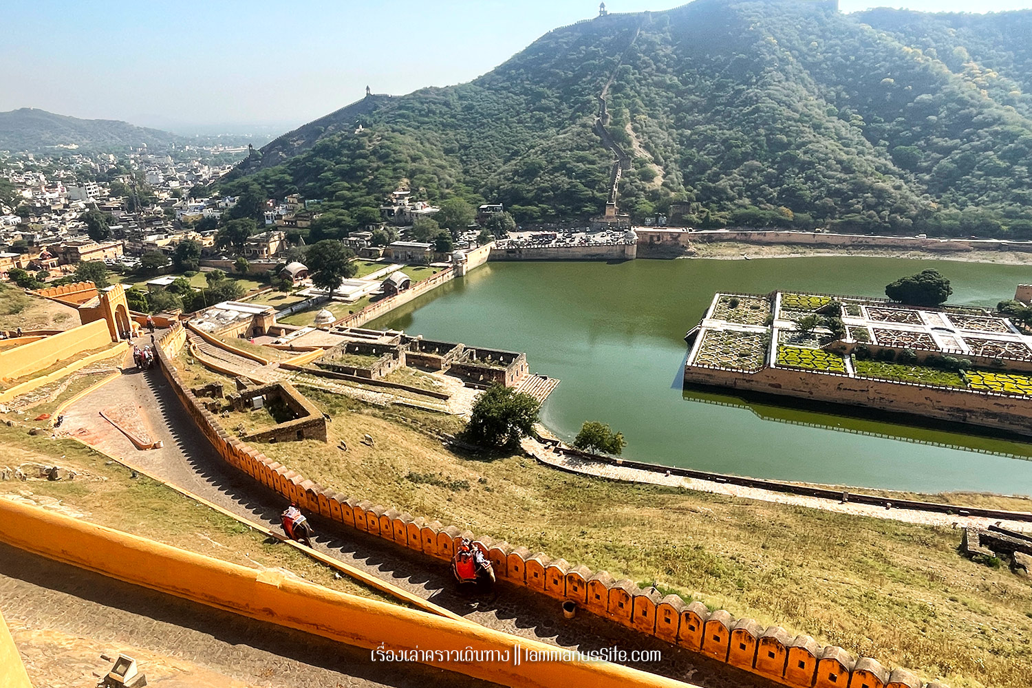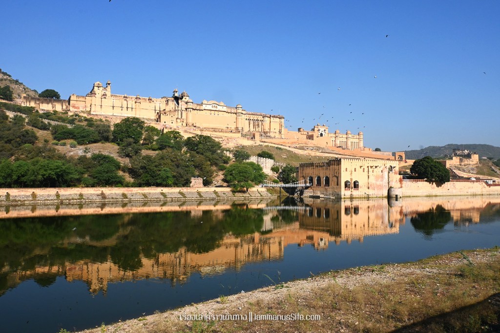 นั่งรถจากในเมืองมาจอดถ่ายรูป Amber Fort กับทะเลสาบเมาตา (Maota) ตรงนี้ และเป็นจุดขึ้นจี๊บด้วย