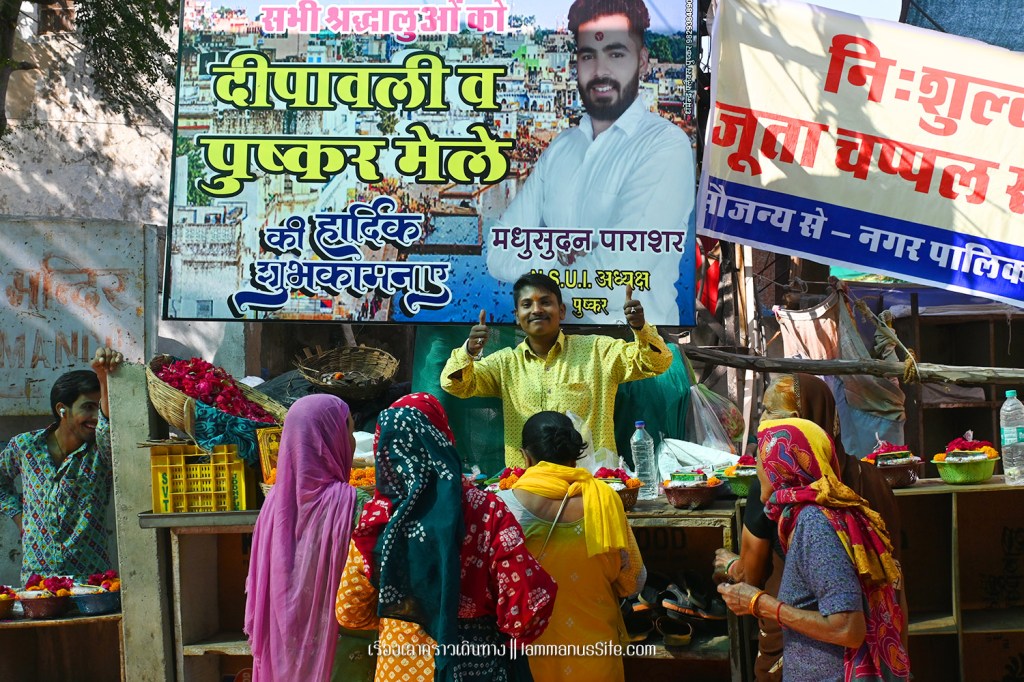 Jagtapita Brahma Mandir เดินฝ่าตลาดนัดเพื่อจะไปทะเลสาบพุชการ์ จะผ่านวัดฮินดูอันศักดิ์สิทธิ์ ที่ต้องถอดรองเท้าและฝากของทุกอย่างไว้ด้านนอก (มีร้านค้าที่มีตู้รับฝากของ) เดินขึ้นไปเพื่อนมัสการพระพรหมที่ว่ากันว่าศักดิ์สิทธิ์มาก 1 ใน 5 ของอินเดีย