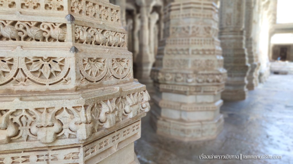 Ranakpur Jain Temple (Chaturmukha Dharanavihara) 1 ใน 5 วัดศักดิ์สิทธิ์ของศาสนาเชนในอินเดีย สร้างโดยคหบดี Dharna Sah เมื่อ 500 ปีก่อน ด้วยหินอ่อนทั้งหลัง มีโดม 80 โดม สวยงามสุดๆด้วยเสาแกะสลักพันกว่าต้น ลวดลายสลักแต่ละเสาละเอียดสวยงามไม่ซ้ำกัน คิดเป็นพื้นที่แกะสลักกว่า 3,000 ตารางเมตร
