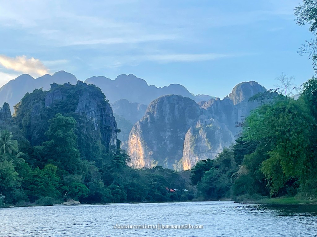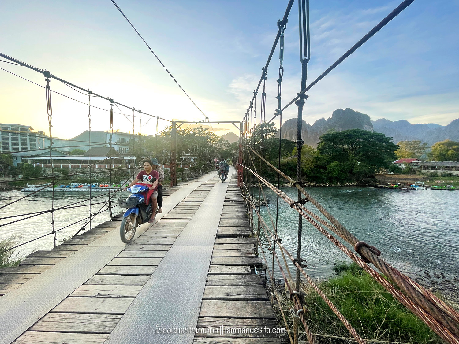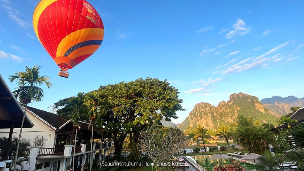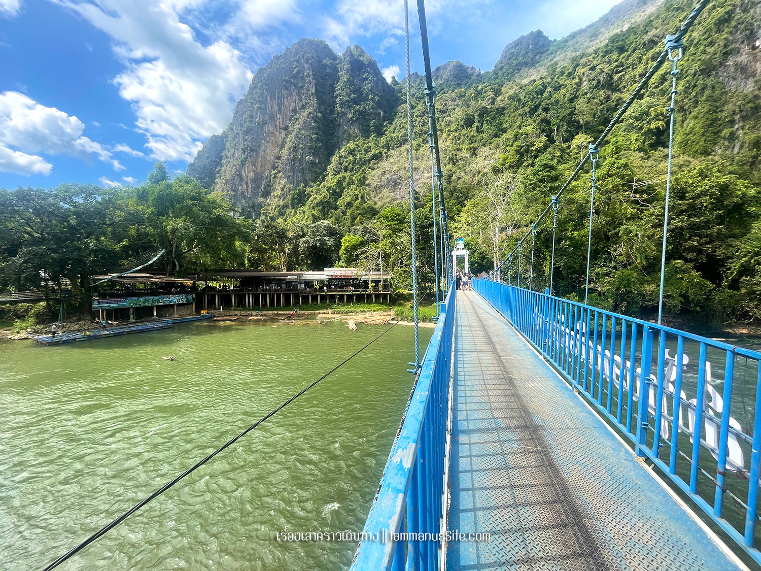 คราวนี้เลือกพักที่ Riverside Boutique Hotel ริมน้ำซอง โรงแรมสวย บรรยากาศดี เป็นอาคาร 3 ชั้นที่พอจะกลมกลืนกับแนวเขาฝั่งตรงข้ามได้ ห้องพักได้มาตรฐานสมราคา มุมมองสวย ร้านอาหารก็ดี พิกัดอยู่ติดสะพานแขวน