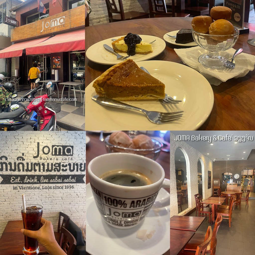 ร้านกาแฟและเบเกอรีเจ้าดังอีกร้าน ดังชนิดว่าพอใครรู้ว่ามาเที่ยวเวียงจันทน์ก็จะบอกว่าอย่าพลาดร้าน Joma ในเวียงจันทน์มี 4 สาขา ที่หลวงพระบางมีอีก 2 สาขา สาขาที่ไปคราวนี้คือสาขา Nam Phou อยู่ตรงข้ามกับร้านอาหารยอดฮิต”ขอบใจเด้อ” สั่งกาแฟ Cold brew มาจิบก็ถือว่าดีทีเดียว สั่งเค้กมาลองกัน 3-4 อย่าง พายฟักทองอร่อยดี โดนัทลูกกลมๆก็อร่อย นอกจากกาแฟ-เบเกอรี่ ก็มีอาหารประเภทแซนวิช ซุป สลัด ด้วย