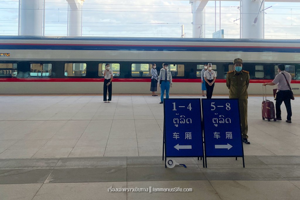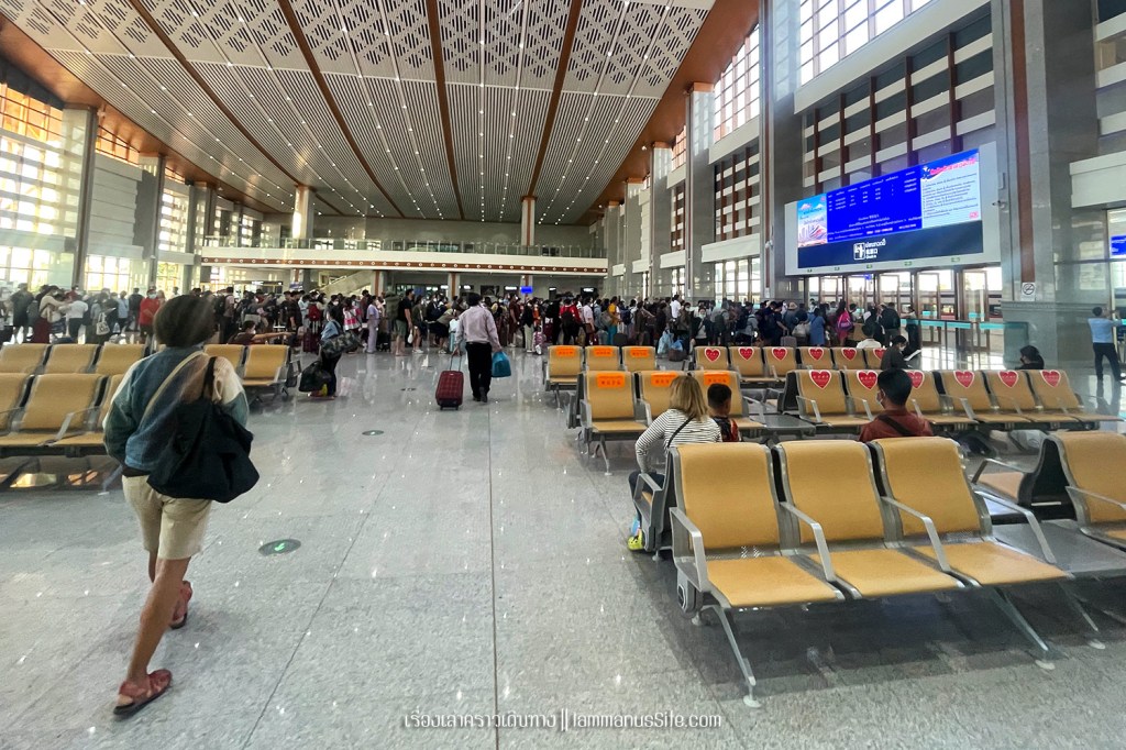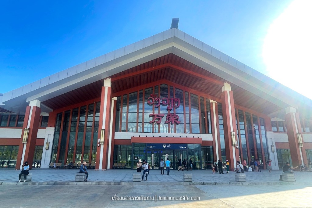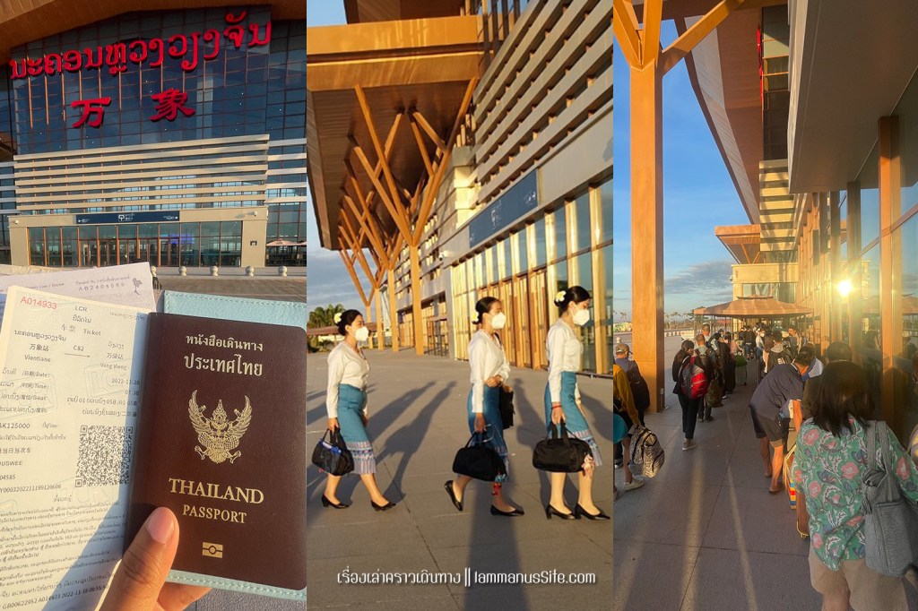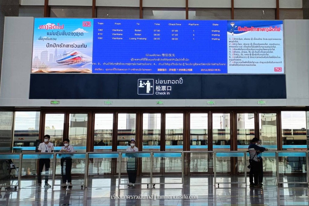 คราวนี้พวกเราจะไปกันแค่วังเวียง จากเวียงจันทน์ไปถึงวังเวียงใช้เวลาประมาณ 1 ชม. (เวียงจันทน์ไปหลวงพระบาง ประมาณ 2 ชม.) เลือกจองรถไฟแบบ EMU ชั้น 2 โดยให้เอเยนต์จองให้ เลือกเที่ยวเช้า 7:30 มีการตรวจตั๋วกับหนังสือเดินทางตั้งแต่ด้านหน้า คือไม่มีตั๋วจะเดินเข้าไปนั่งเล่นในโถงด้านในไม่ได้ และตอนนี้ยังขอดู Vaccine Certificate ด้วย ควรไปถึงก่อนเวลาสักหน่อยเพราะคนเยอะ แล้วก็เผื่อเวลาตื่นเต้นกับสถานีใหม่ จะได้มีเวลาถ่ายรูปเล่นด้านหน้า 📷