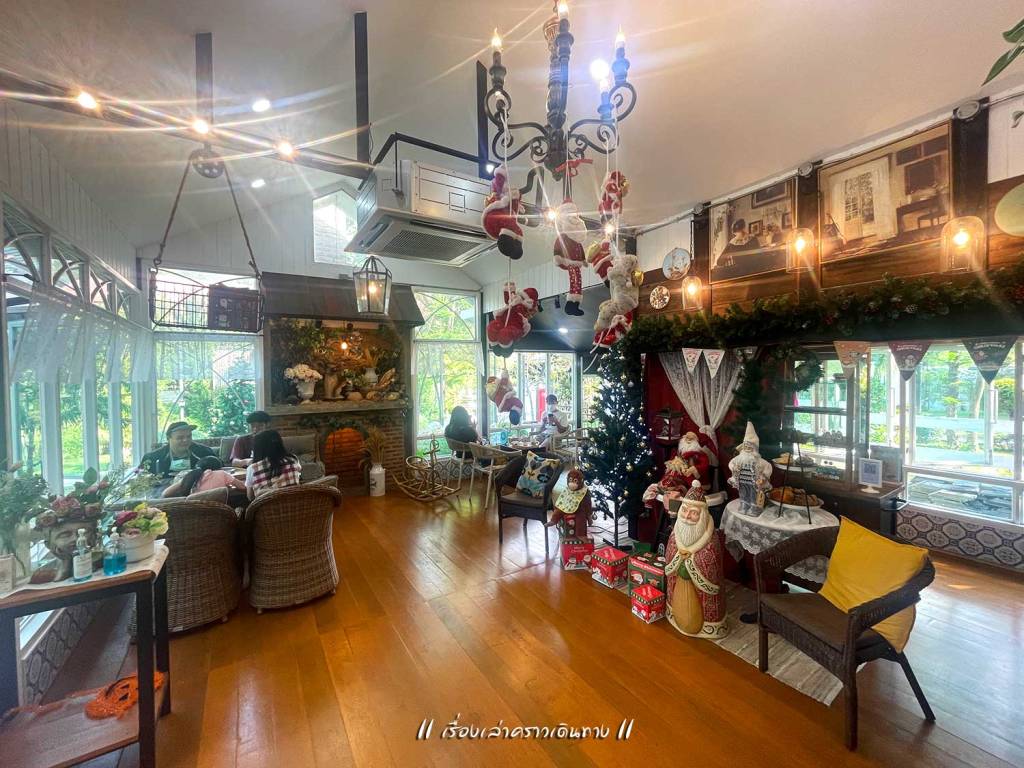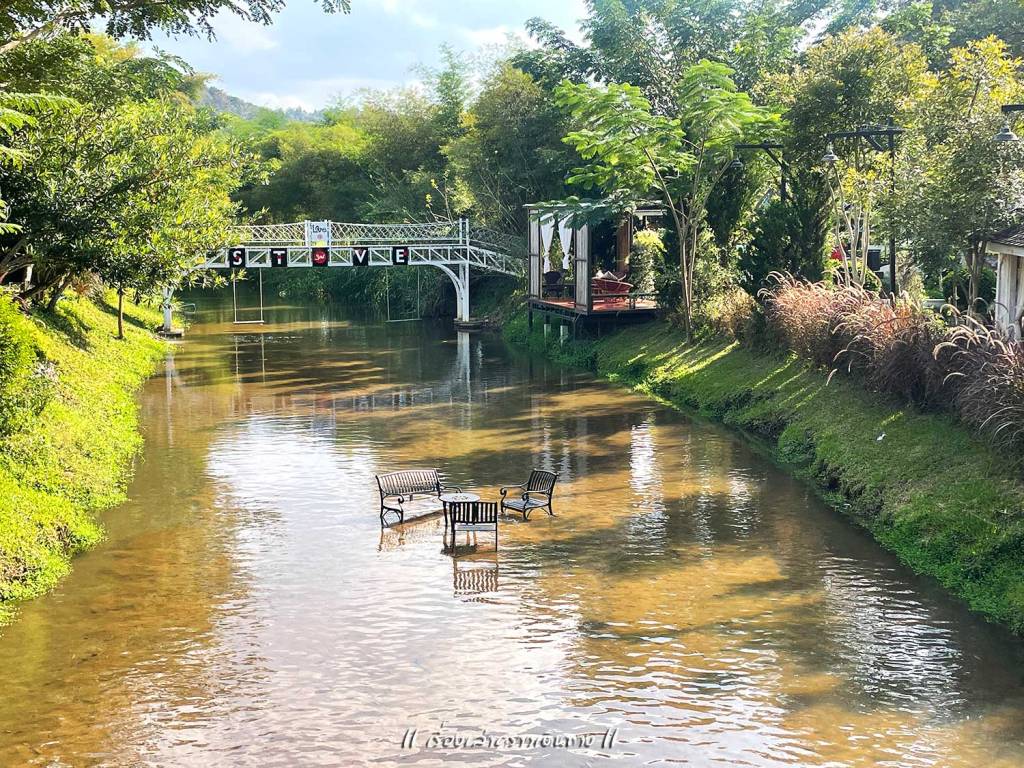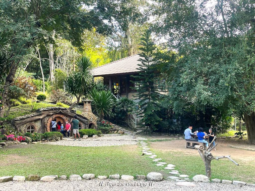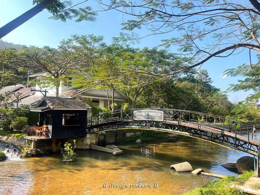 อาหารรอนานอยู่เหมือนกัน แต่ต้องทำใจถ้าจะเที่ยวช่วงเทศกาล ระหว่างรออาหาร ก็ไปเดินเที่ยวเล่นถ่ายรูปได้ บริเวณกว้างมากๆ มีร้านกาแฟตรงนี้ มี Bakery house ตรงโน้น มีร้านค้าตรงนั้น มีสะพานแขวนข้ามน้ำแม่ลาย มีสวนดอกไม้ มีต้นไม้ใหญ่ร่มรื่น บางมุมบรรยากาศญี่ปุ่น เดินเลยไปกลายเป็นบรรยากาศยุโรป สายถ่ายรูปน่าจะชอบมาก เดินเล่นถ่ายรูปจนพอใจ กลับไปที่โต๊ะ อาหารก็มาพอดี