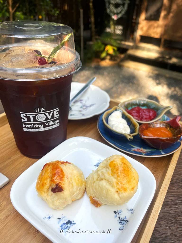 ถึงเวลามื้ออาหาร ความคิดแรกจะกินร้านลาบ แต่ร้านปิด คนทำคงอยากหยุดไปเที่ยวบ้างแหละ เพื่อนเลยนำเสนอไปร้าน Stove ร้านอาหาร+คาเฟ่ เก๋ไก๋และใหญ่โต มีมุมถ่ายรูปเยอะมาก ร้าน The Stove ตั้งอยู่ภายในศูนย์อบรมเยาวชนและพัฒนาบุคลากร (The stove-Inspiring Village) ทำให้มีกิจกรรมให้ทำนอกเหนือจากเป็นร้านอาหาร ร้านกาแฟด้วย