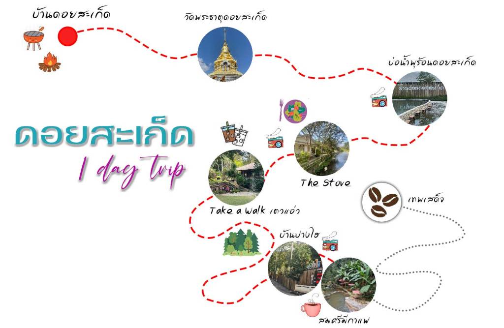 ไม่เคยคิดว่าสามารถจัด 1 day trip ดอยสะเก็ดก็ได้ แต่ก็ได้ตามนี้เลย เที่ยวสบายๆใน 1 วัน หรือใครชื่นชอบบรรยากาศก็นอนแถวบ้านปางไฮสักคืนก็ยังได้ มีที่พักเปิดบริการเยอะ ห้องพักสวยๆในป่าก็มี ริมน้ำก็มี แต่พวกเราขอกลับไปนอนบ้านเพื่อนจัดปาร์ตี้กันเหมือนเดิม