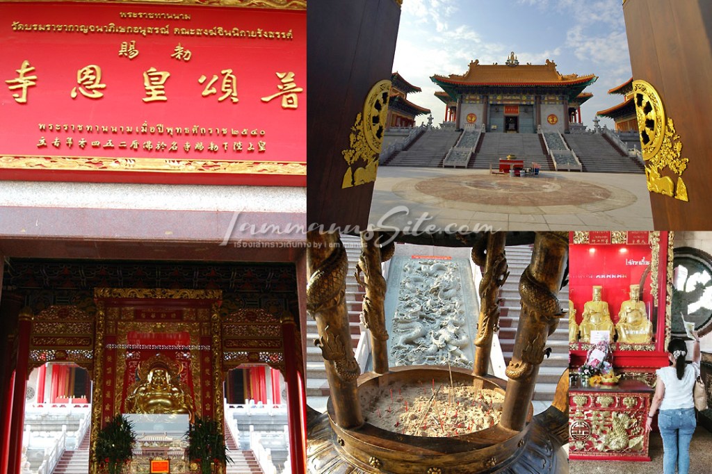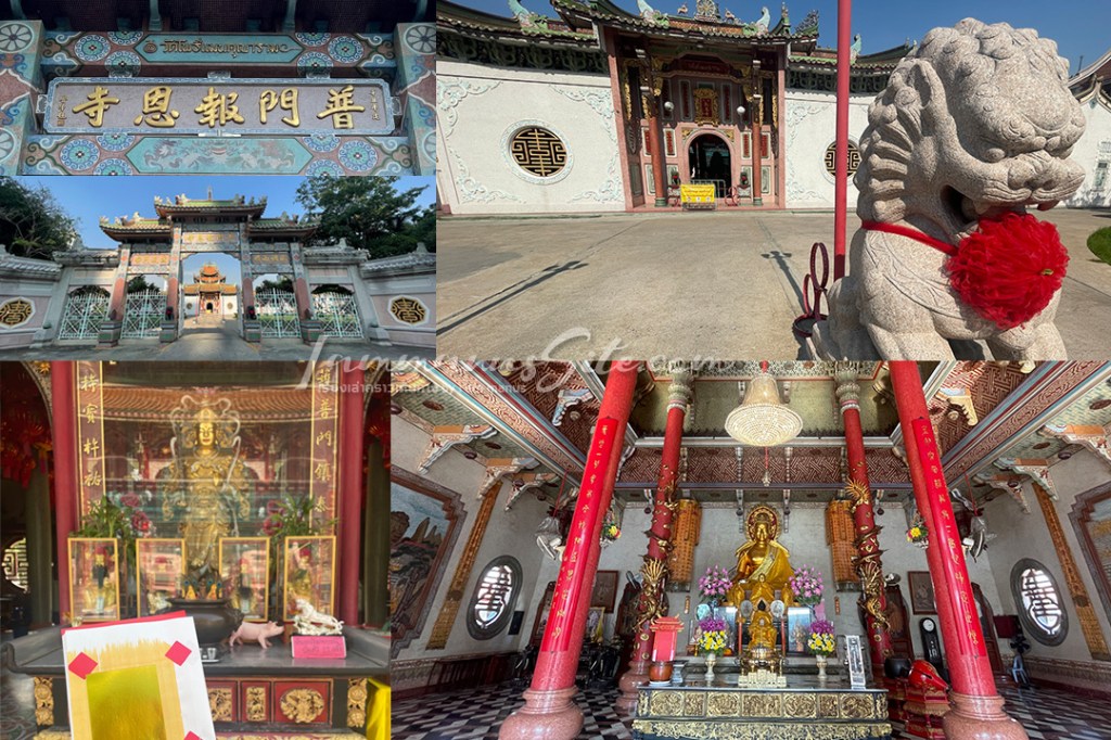 แม้จะเป็นวัดส่วนหางมังกร แต่เป็นวัดที่มีบริเวณกว้างขวางมากที่สุด อุโบสถแบบจีนขนาดใหญ่ ภายในประดิษฐานพระประธานพระพุทธเจ้า 3 พระองค์สีทองอร่าม มีพระสาวกซ้ายและขวา คือพระมหากัสสปะและพระอานนท์ ผู้คนนิยมมากราบไหว้ขอพรเรื่องการเรียนการศึกษา ส่วนคนที่มาไหว้แก้ปีชงก็มีใบดวงชะตาให้มาเขียนฝากดวงกับองค์ไท่ส่วยเอี๊ยะเหมือนกัน
