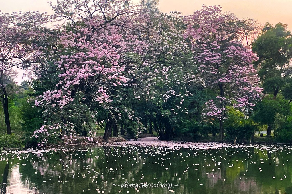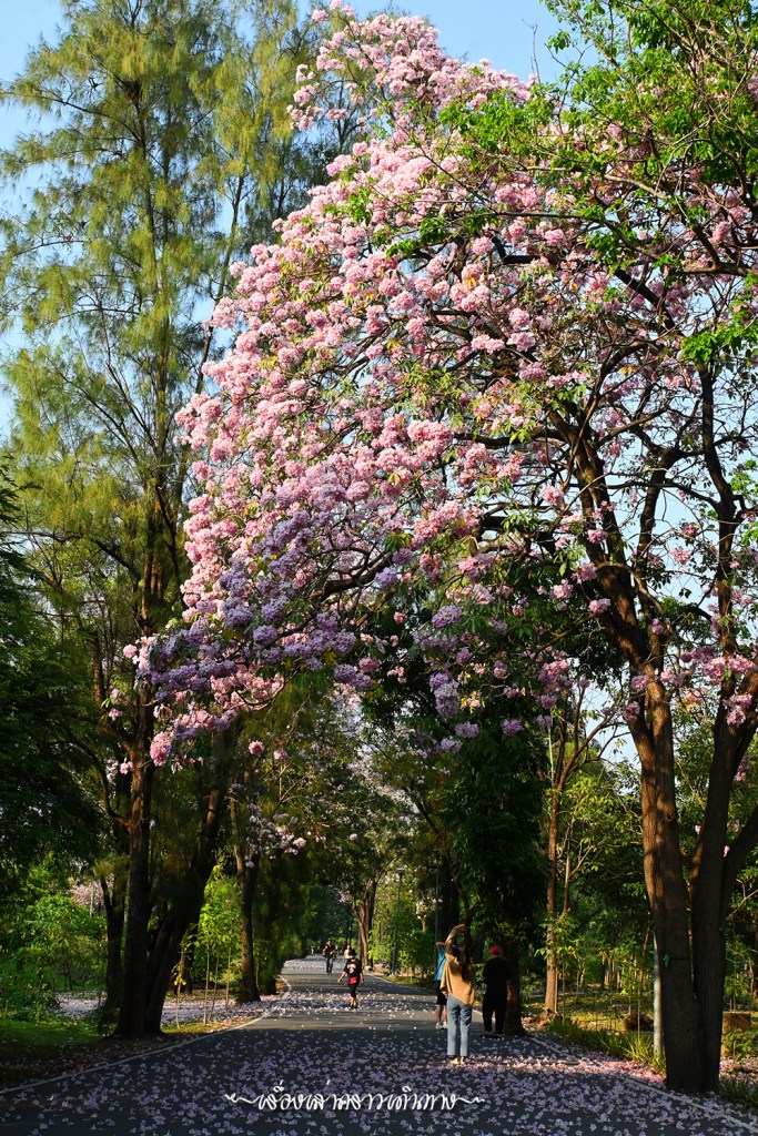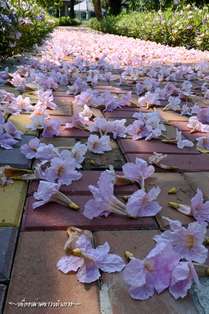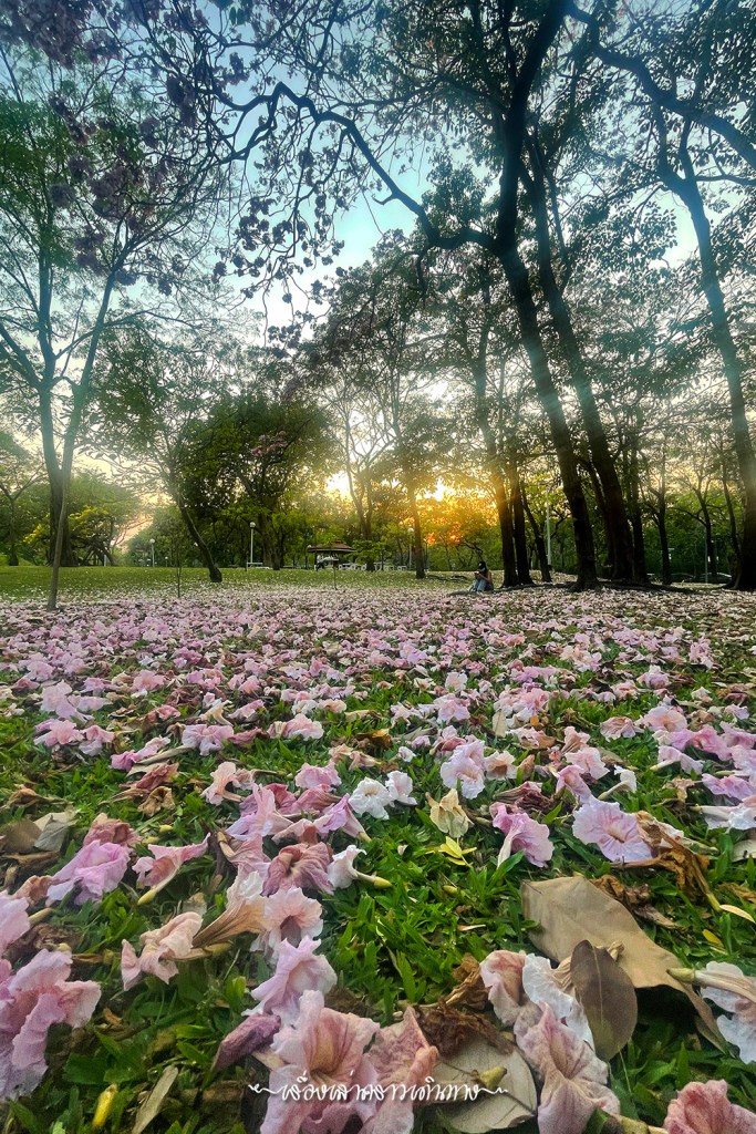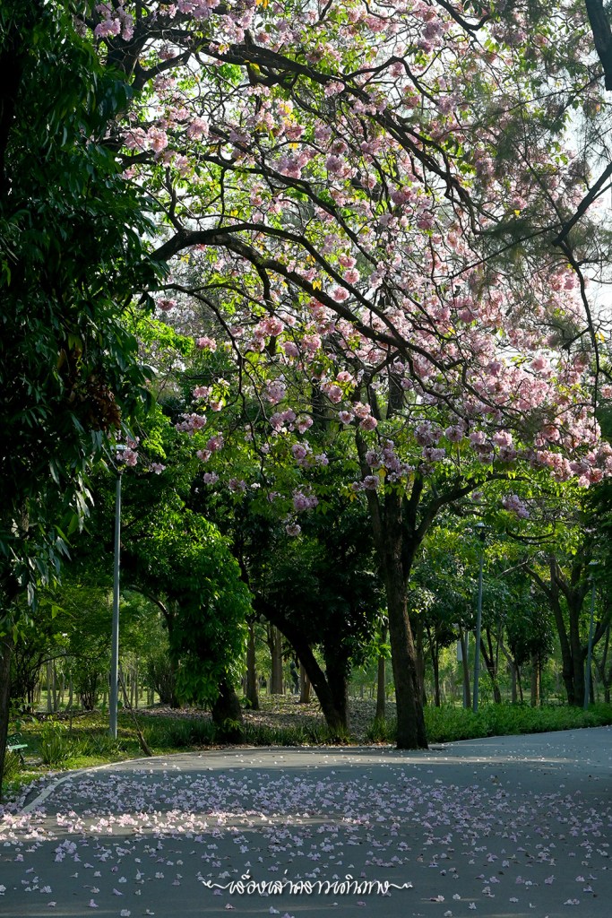 ถ้ามีเวลา อยากให้เข้าไปเดินชมด้านในสวนกัน ด้านในสวนสาธารณะหลายที่มีต้นชมพูพันธุ์ทิพย์ปลูกไว้ ตอนที่ออกดอกพร้อมๆกัน สวยงามไม่แพ้ซากุระญี่ปุ่นเลยนะ สำหรับปีนี้ เรามีเวลาว่างนิดหน่อย ได้ไปชมสวนมาบ้าง แต่เหมือนจะช้าไปนิด แต่ก็ยังสวยอยู่แหละนะ นอกจากดอกสวยๆบนต้น ก็มีดอกร่วงบนพื้นเหมือนปูพรมสีชมพูก็สวยดีเหมือนกัน (แต่ไม่น่าถูกใจพี่ๆที่รับหน้าที่กวาดสวน)