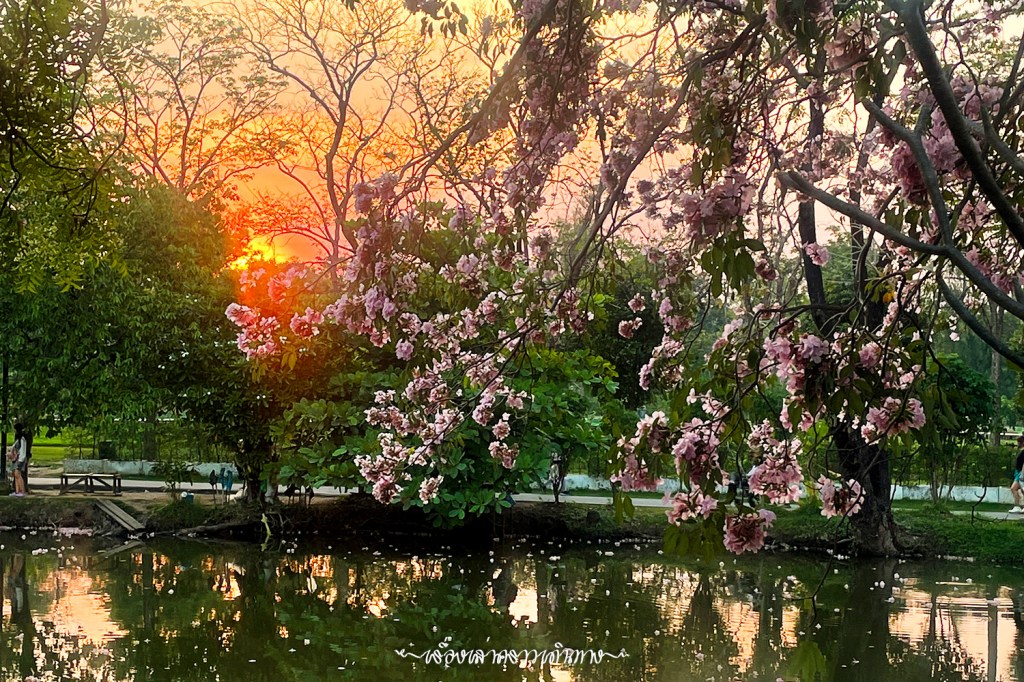 ชอบบรรยากาศตามสวนสาธารณะในตอนนี้ ตอนเย็นจะมีคนเอาเสื่อมาปูนั่งเล่น มานั่งชมดอกไม้ มีคนมาเดินเล่นถ่ายรูปกันเยอะแยะ เด็กๆก็มาวิ่งเล่น สายวิ่งก็ยังมาวิ่งกันเป็นปกติ เพิ่มเติมคือวิ่งในสวนสีชมพูสวยหวาน เพลิดเพลินกว่าปกติ