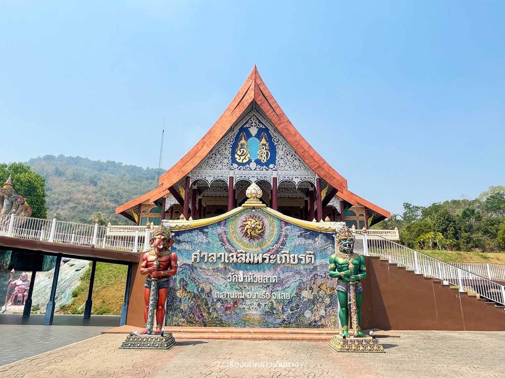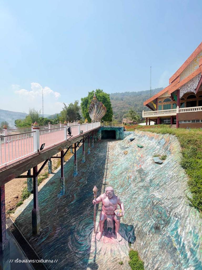 13.40 ชมวัดป่าห้วยลาด วัดป่าแห่งนี้เดิมชื่อว่าสำนักสงฆ์ห้วยลาดก่อตั้งขึ้นโดย หลวงปู่ชอบ ฐานสโม และต่อมาได้มีการพัฒนามาเรื่อยๆ จนถึงปัจจุบันนี้วัดป่าห้วยลาดได้กลายเป็นสถานที่ท่องเที่ยวห้ามพลาดของอำเภอภูเรือ บริเวณในวัดถูกตกแต่งเอาไว้อย่างงดงาม ทั้งงานศิลปะและการออกแบบที่ผสมผสานกันออกมาได้อย่างลงตัว มีมุมถ่ายภาพสวยๆ คู่กับงานประติมากรรมมากมาย