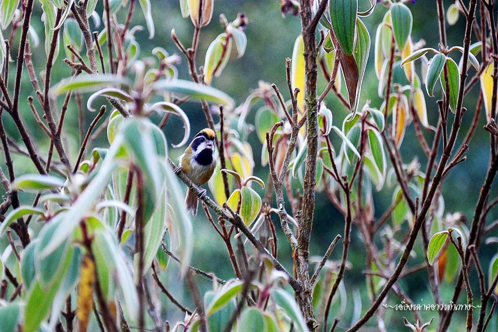 เวลาเดินเที่ยวจะมีเจ้าหน้าที่พาเดิน ระหว่างทางพี่เจ้าหน้าที่บอกให้หยุด รอดูนกกัน เป็นนกพิเศษที่เจอยาก มีที่ภูหลวงเท่านั้น เจ้านกตัวเล็กบินไปบินมา หน้าตาเหมือนนกกระจอก อุปกรณ์ถ่ายภาพไม่ได้เอื้ออำนวยกับการถ่ายนก แต่ก็พยายามกดมาสัก 20 รูป แต่มันตัวเล็กและบินไวละเกิน กลับมาโหลดดู พอใช้ได้ 2 รูป! กลับมาหาข้อมูลหน่อยว่านกอะไร “นกปากนกแก้วหูดำ” มีแค่ที่ภูหลวงจริงๆด้วย อ่านเจอว่าหลายคนไปเฝ้า 2 วัน 3 วัน ไม่ได้เห็น นักดูนกต่างชาติยังบินมานั่งซุ่มดูกันเลย เออ…ดวงดีมากนะเรา แต่ฝีมือและอุปกรณ์ถ่ายได้แค่นี้