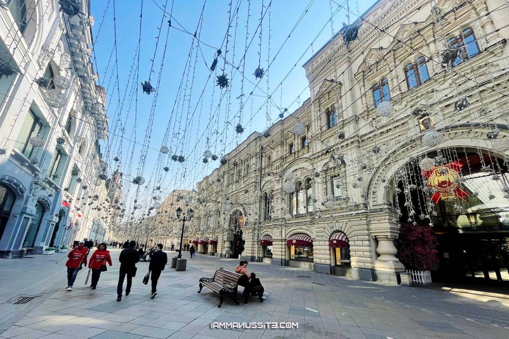 จากโรงแรมเดินมาทาง Theatre Square ผ่าน Bolshoi Theatre, Teatral’nyy Fontan และ Karl Marx Monument ไปถึงถนน Nikol’skaya ยาว 1 กม. เดินถ่ายรูปเล่นได้เพลินๆ จนถึง Red Square