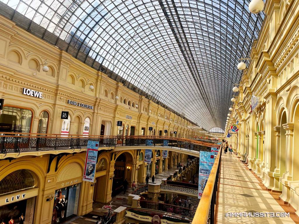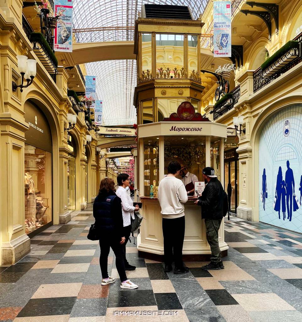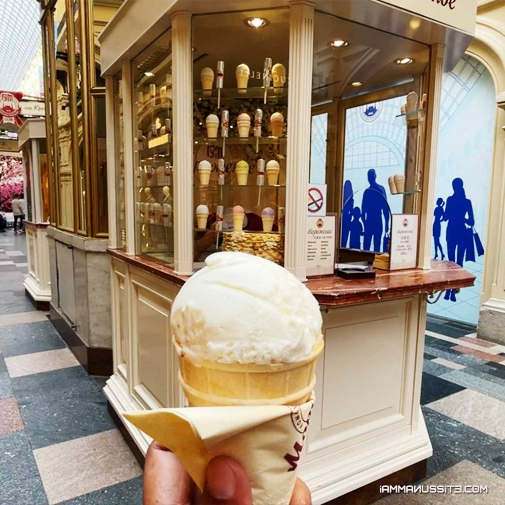 “Gum” ห้างสรรพสินค้าหรูหราไฮโซ ในอาคารเก่าแก่สวยงามบริเวณจัตุรัสแดง ด้านในมีร้านค้า ร้านอาหาร คาเฟ่ มาถึงแล้วก็ควรแวะเข้าไปเดินเที่ยวเล่นสักหน่อย ชั้น 3 มีร้านอาหารแบบ Food court ที่เลือกอาหารตามต้องการ ใส่ถาดไปคิดเงิน แต่ราคาก็ไม่ได้ถูกมากนัก และที่ยอดนิยมอีกอย่างคือ ไอศครีมโคน มีบู๊ทขายอยู่ชั้น 1 หลายบู๊ท ราคา 100 รูเบิ้ล เป็นไอศครีมโคนที่เขาตักใส่โคนไว้แล้ว แค่บอกว่าจะเอารสไหนก็หยิบมาให้เลยไม่มีมาตักใส่โคนตามสั่ง ก็แปลกดี ชิมแล้ว รสวานิลลาก็อร่อยดี ที่ต้องขอเตือนคือ ค่าเข้าห้องน้ำแพงมาก เก็บค่าเข้าห้องน้ำ 50 รูเบิล!!!
