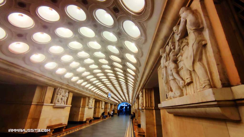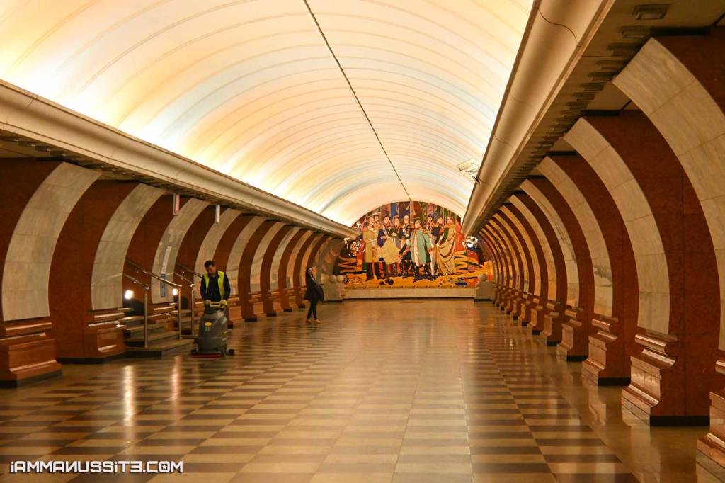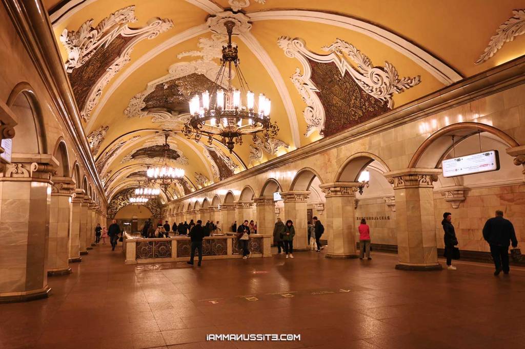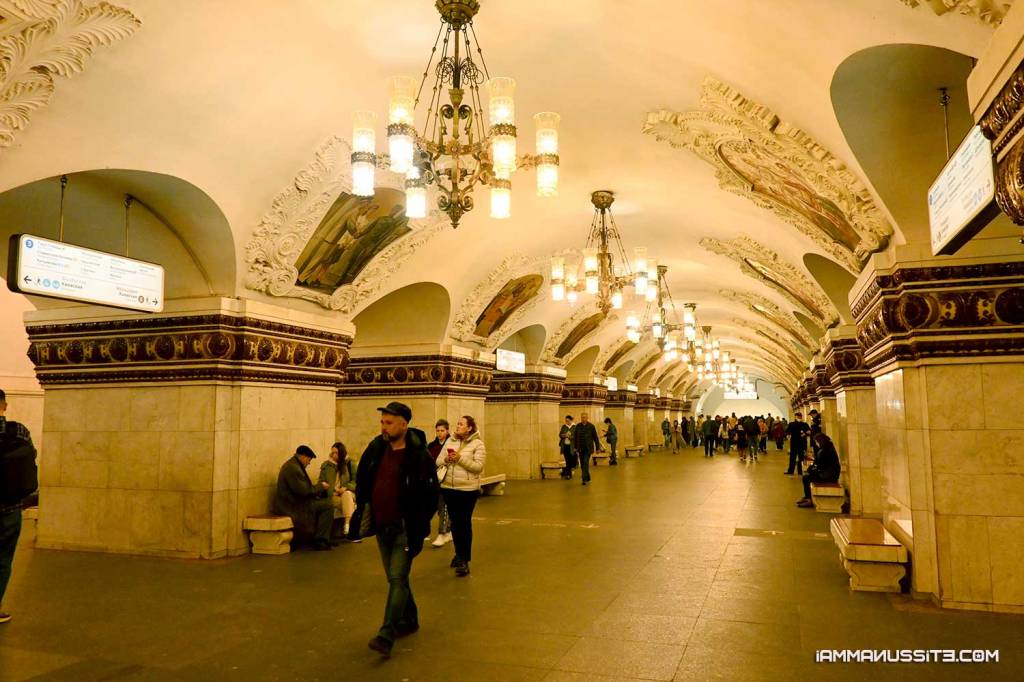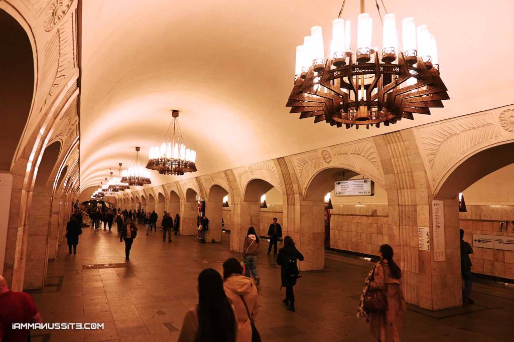 Moscow metro เป็นหนึ่งในระบบรถไฟเก่าแก่ของโลก เริ่มเปิดบริการมาตั้งแต่ปี คศ. 1935 ปัจจุบันมี 15 สาย เชื่อมต่อกันได้ทั่วเมืองมอสโคว ความโดดเด่นของสถานีรถไฟใต้ดินมอสโควคือ การออกแบบให้สะท้อนความยิ่งใหญ่อลังการของสหภาพโซเวียตผ่านความหรูหราสวยงามจนแทบลืมว่าอยู่ในสถานีรถไฟ ทั้งภาพวาดสวยงามใหญ่โต ทั้งรูปปั้น ประติมากรรมต่างๆ ยังมีโคมไฟตกแต่งใหญ่โตอลังการ แค่นั่งรถไฟแล้วแวะลงตามสถานีก็ถ่ายรูปได้แล้ว มีหลายเวปไซต์รวบรวมรายชื่อสถานีสวยงามที่ควรเยี่ยมชม บางเวปก็มี 5 สถานี บางเวปก็ 15 สถานีไปเลย ถ้ามีเวลาหลายวันแนะนำว่าให้เวลาเที่ยวสถานีรถไฟสัก 1 วัน แวะไปเรื่อยๆตามสถานีต่างๆเพราะมีความสวยมีเอกลักษณ์ไม่ซ้ำกันเลย เบื่อแล้วก็ออกจากสถานีขึ้นไปเที่ยว แล้วลงมานั่งรถไฟต่อไปอีก