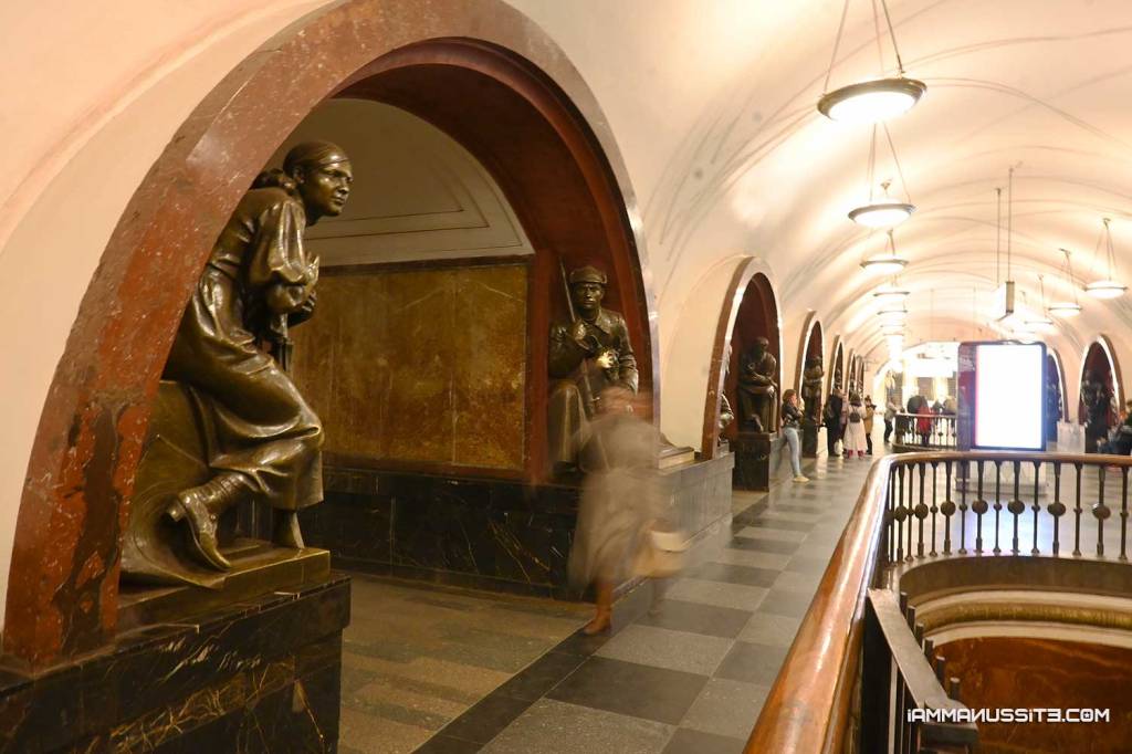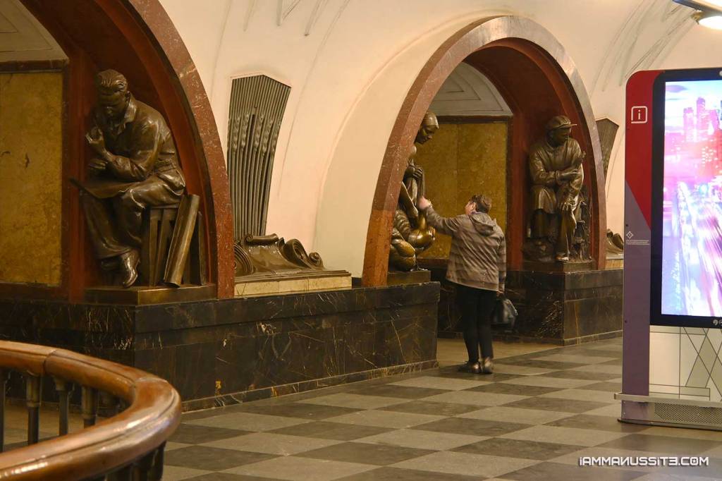 สถานีที่ติดอันดับยอดนิยมของนักท่องเที่ยว เพราะอยู่ใกล้จัตุรัสแดง เป็นสถานีที่เด่นด้วยประติมากรรมหินสลักเต็มไปทั้งสถานี อันที่เป็นไฮไลต์ของสถานีคือรูปปั้นหมา จะเห็นว่าเป็นมันเงาวาว เพราะคนรัสเซียจะเดินผ่านแล้วลูบเจ้าหมานี้กัน เพราะเชื่อว่าจะทำให้โชคดีและเดินทางปลอดภัย