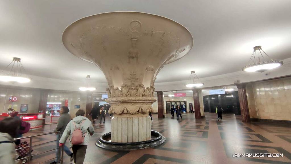 สถานีที่อยู่ในรายการสถานีสวยของหลายเวป เพราะความหรูหราของฝ้าโค้งกับโคมไฟระย้า แบบศิลปะบาโรค แถมด้วยภาพวาดเกี่ยวกับชัยชนะในสงครามต่างๆเต็มไปหมด