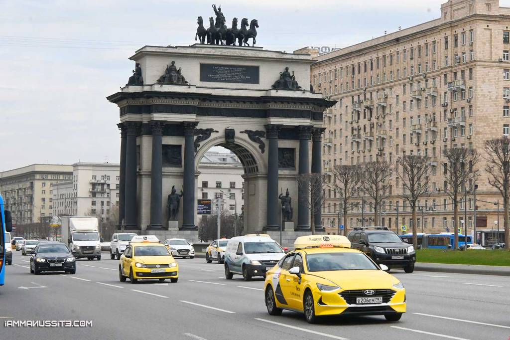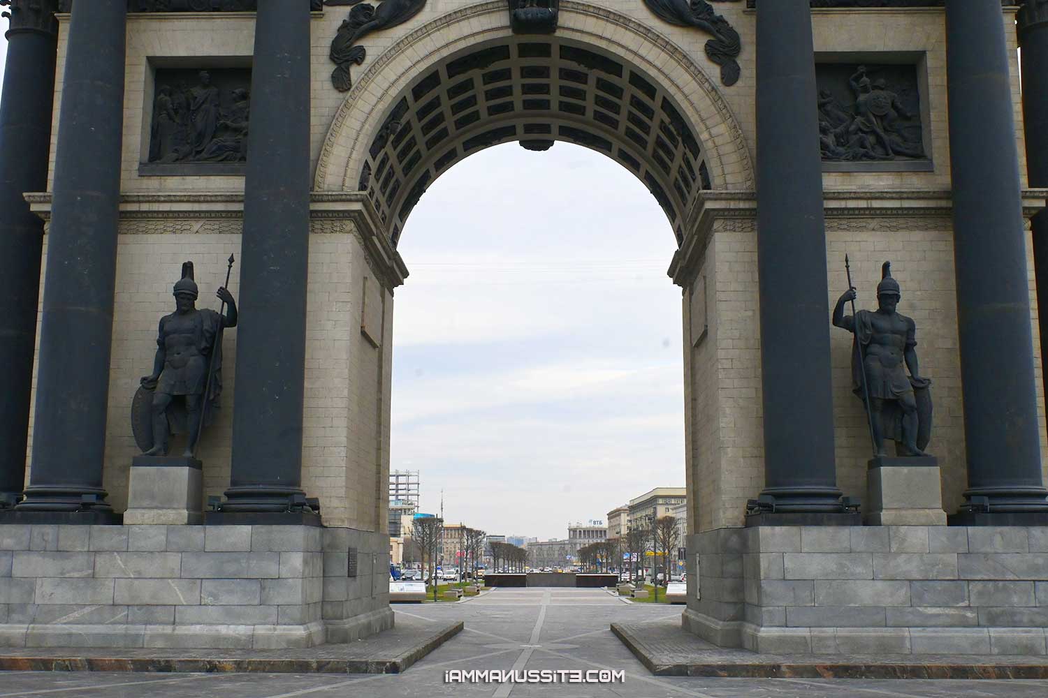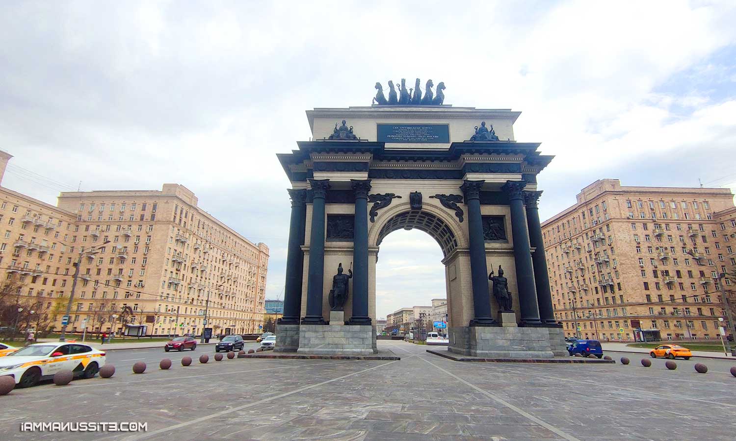 นั่งรถใต้ดินมาที่สถานี Park Pobedy สถานีที่ลึกสุดในมอสโคว ออก Exit 3 จะขึ้นมาตรงเกาะกลางถนนที่ตั้งประตูชัยเลย ถ้าออก Exit อื่นก็เดินลงทางลอดใต้ดินข้ามไปได้เหมือนกัน