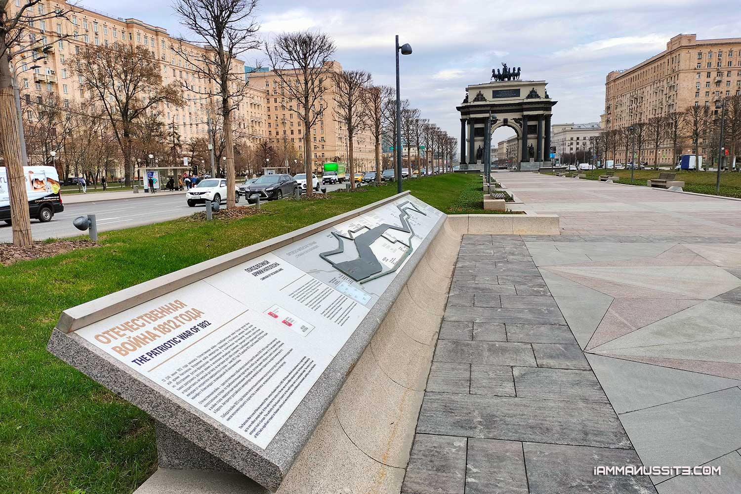 ประตูชัยมอสโคว สร้างขึ้นเนื่องในโอกาสที่ พระเจ้าซาร์อเล็กซานเดอร์ที่ 1 แห่งรัสเซีย มีชัยชนะเหนือกองทัพนโปเลียนที่ยกทัพมาตีจักรวรรดิ์รัสเซียในปี 1812 สร้างครั้งแรกปี 1814 เป็นโครงสร้างไม้ มาก่อสร้างใหม่เป็นแบบที่เห็นในปี 1829