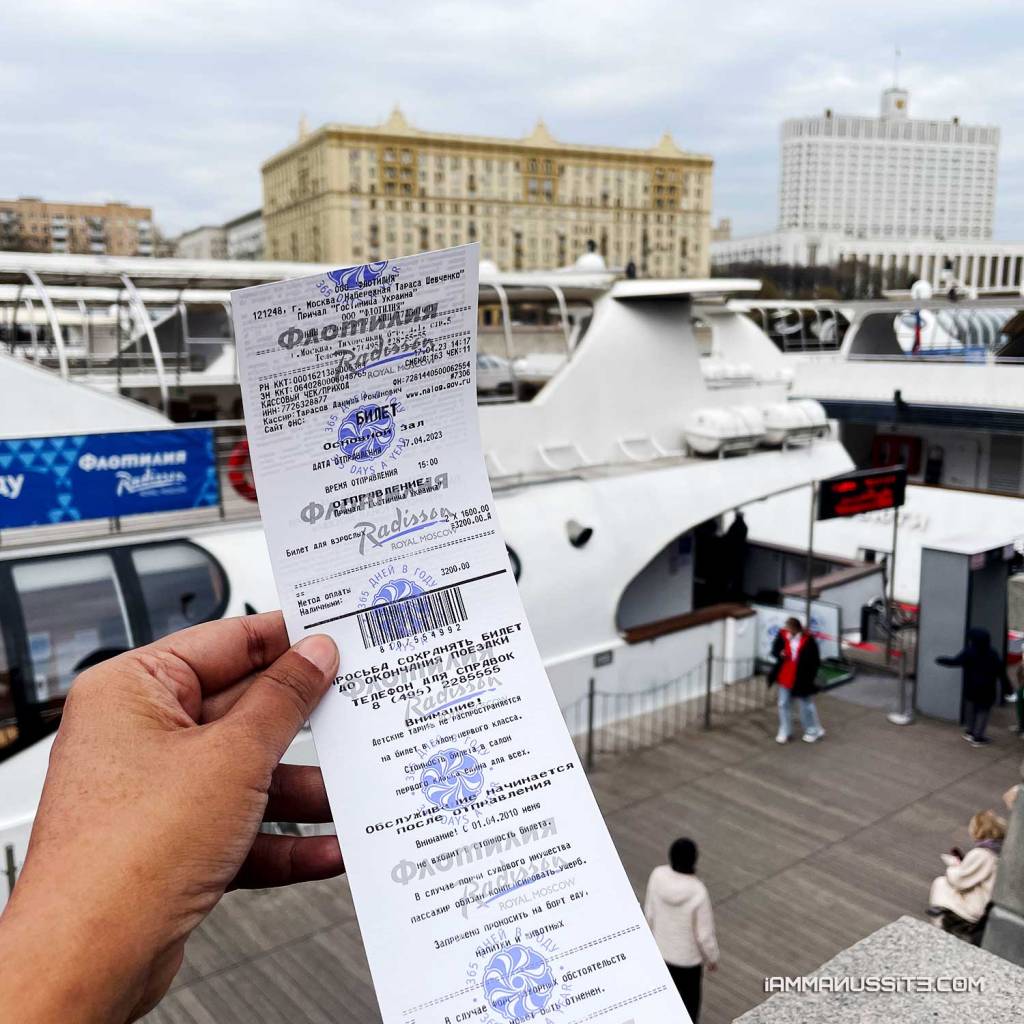 สนใจจะล่องเรือ เข้าไปดูรายละเอียดได้ที่ https://en.radisson-cruise.ru/tickets/ ซึ่งก่อนมีสงครามรัสเซีย-ยูเครน สามารถเข้าไปจองและจ่ายเงินโดยตัดบัตรเครดิตได้เลย แต่หลังจากรัสเซียโดนยุโรปบอยคอต ทำให้ไม่สามารถใช้บัตรเครดิตนอกประเทศรัสเซียได้เลย ทำให้เราจองเรือไม่ได้ ก็เลยต้องไปซื้อบัตรที่สำนักงานตรงท่าเรือเลย ซึ่งทำให้การเที่ยววันสุดท้ายผิดแผนไป