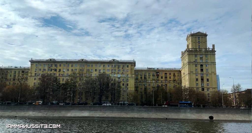 ปลายทางเส้นทางล่องเรือ “Flotilla Radisson Royal” ที่ สะพาน Bolshoy Ustyinskiy กับ Kotelnicheskaya Embankment Building