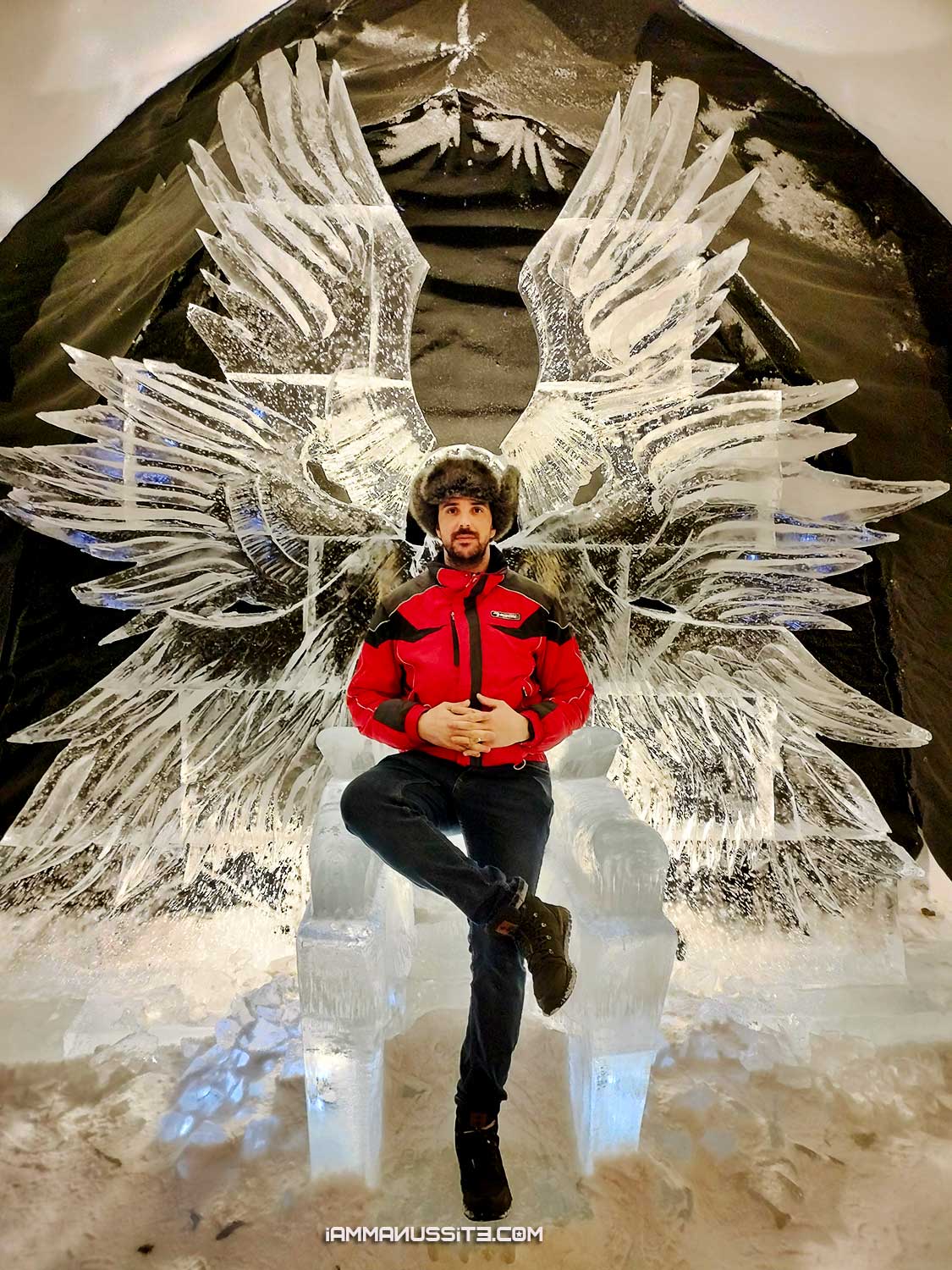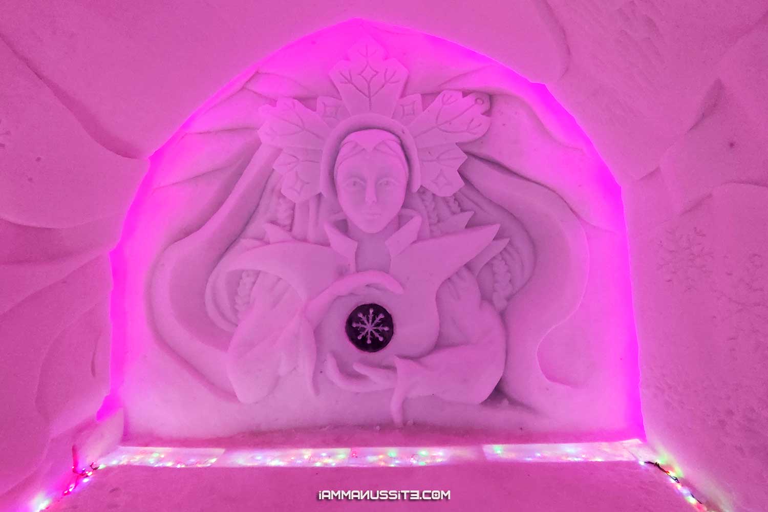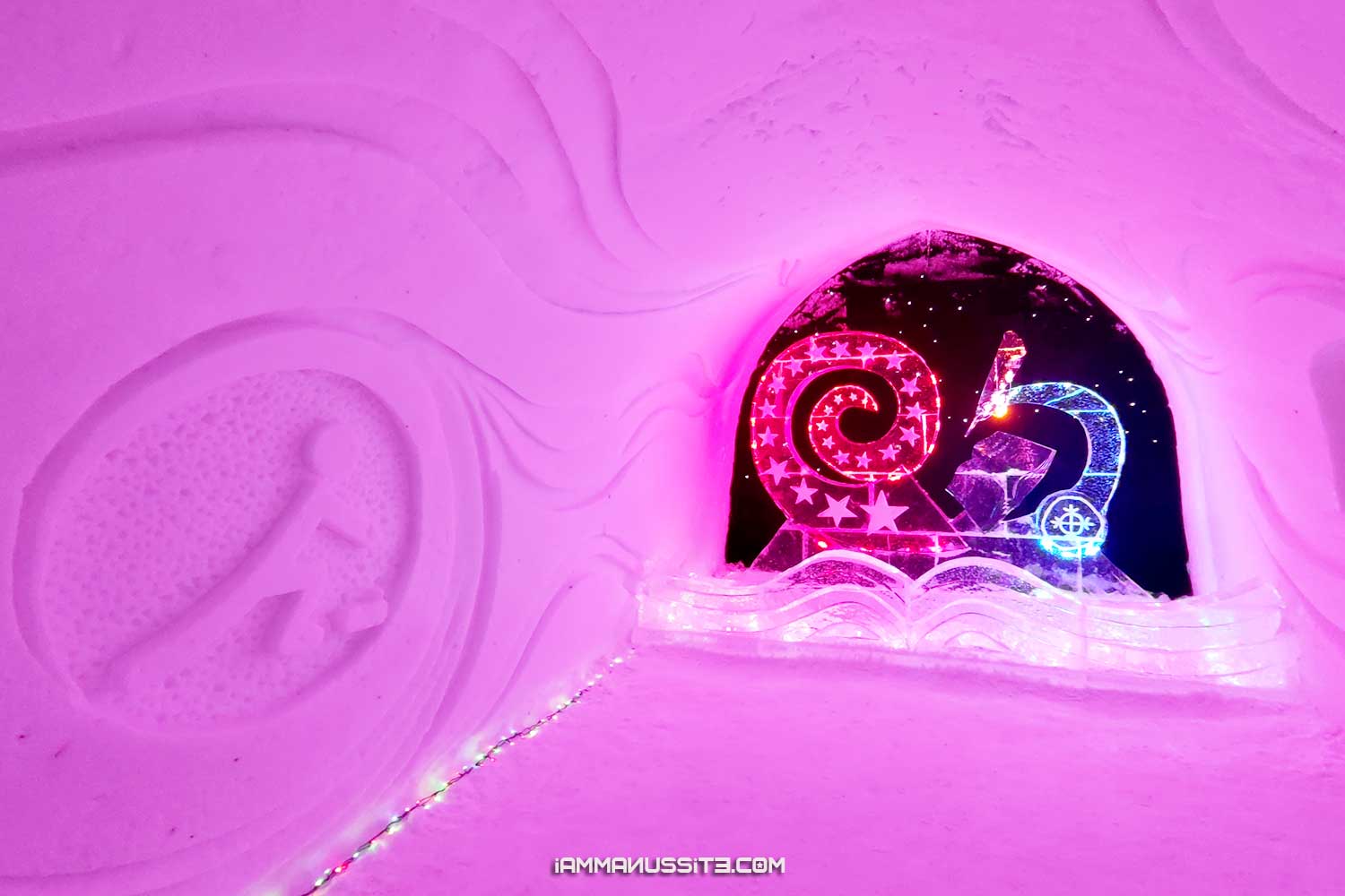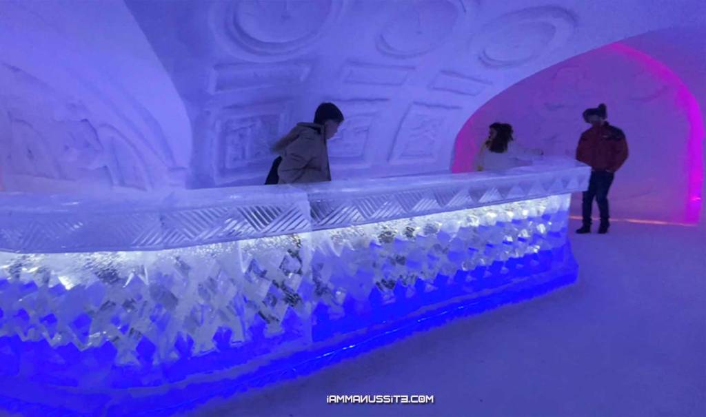จุดท่องเที่ยวที่นักท่องเที่ยวนิยมไปอีกจุดคือ หมู่บ้านหิมะ ที่สร้างจากหิมะและน้ำแข็ง ชื่อหมู่บ้านแต่ความจริงเป็นเหมือนอุโมง ที่สร้างเป็นห้องต่างๆ ตกแต่งด้วยหิมะกับน้ำแข็งสลัก อารมณ์เหมือนน้ำแข็งสลักงานแต่งงานแต่เยอะและสวยกว่า มีส่วนที่เป็นห้องโถงมีบาร์เครื่องดื่มยาวๆ ที่สามารถมาเช่าจัดเลี้ยงได้ด้วย