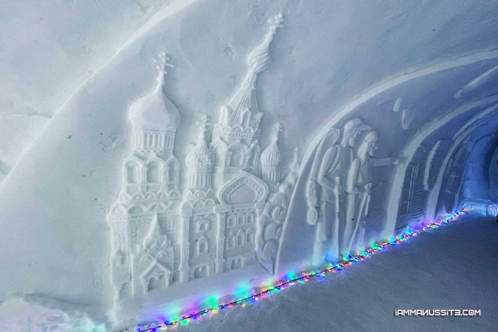 หมู่บ้านหิมะที่นี่ได้บันทึกใน The Russian Record Book ว่าเป็นหมู่บ้านที่สร้างจากหิมะใหญ่ที่สุด (ในไหนก็ไม่รู้) แต่ละปีก็จะสร้างออกมาไม่เหมือนกัน ใกล้หน้าร้อนแล้วอีกไม่นานก็จะละลายไปหมด รอสร้างใหม่ปีหน้า