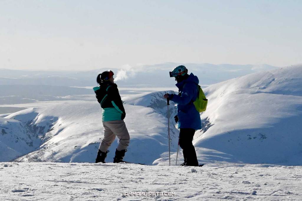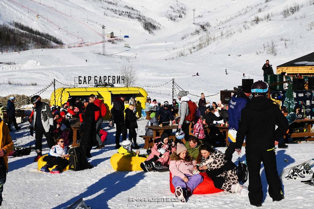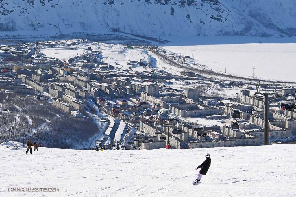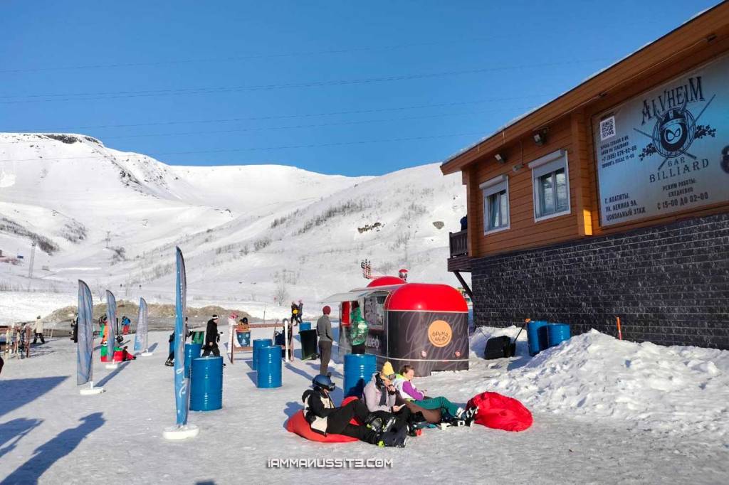 นักท่องเที่ยวส่วนมากมาที่เทือกเขา Khibiny เพื่อกิจกรรมฤดูหนาว ที่นี่มีสกีรีสอร์ทดีๆหลายที่ ไกด์อดัมพาเราไปแวะสกีรีสอร์ท แล้วนั่งกระเช้าขึ้นไปด้านบนเพื่อชมวิว ได้เห็นคนรัสเซียมาสกีกันเยอะมาก เพราะอากาศดี ไม่หนาวมากแต่หิมะยังเยอะ ด้านล่างมีลานดนตรี สกีเสร็จก็มานั่งจิบเครื่องดื่มฟังเพลง เพลิดเพลินน่าอิจฉามากๆ