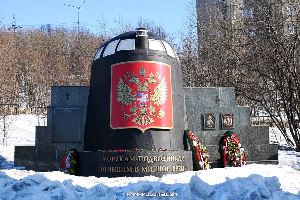 อนุสรณ์สถานที่ทำไว้ให้ระลึกถึงเหตุการณ์เรือดำน้ำพลังงานนิวเคลียร์ 141-Kursk เกิดอุบัติเหตุจมลงในปี 2000 ทำให้ลูกเรือ 118 ชีวิตตายทั้งหมด มีชิ้นส่วนเรือดำน้ำของจริงมาวางไว้เป็นอนุสรณ์ ขึ้นเนินไปอีกหน่อยจะเป็น Church of the Saviour on the Waters | Cerkov Spasa na vodah สีขาวโคมทอง นอกจากอนุสรณ์สถานกับโบสถ์แล้วยังมีประภาคารกับสมอเรือของจริงวางอยู่ตรงจุดชมวิวเมืองมูร์มันสค์ด้วย