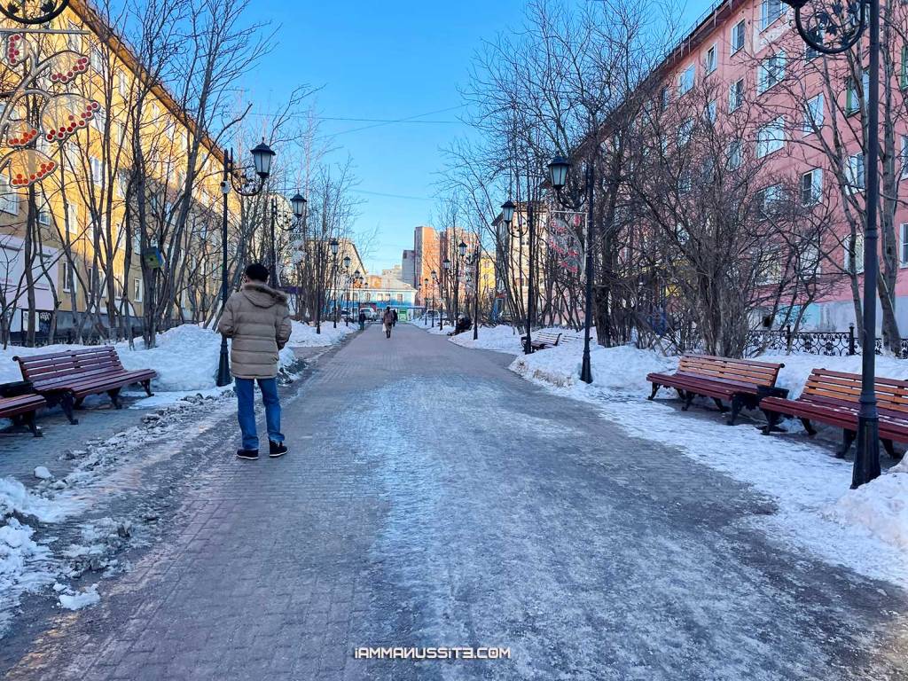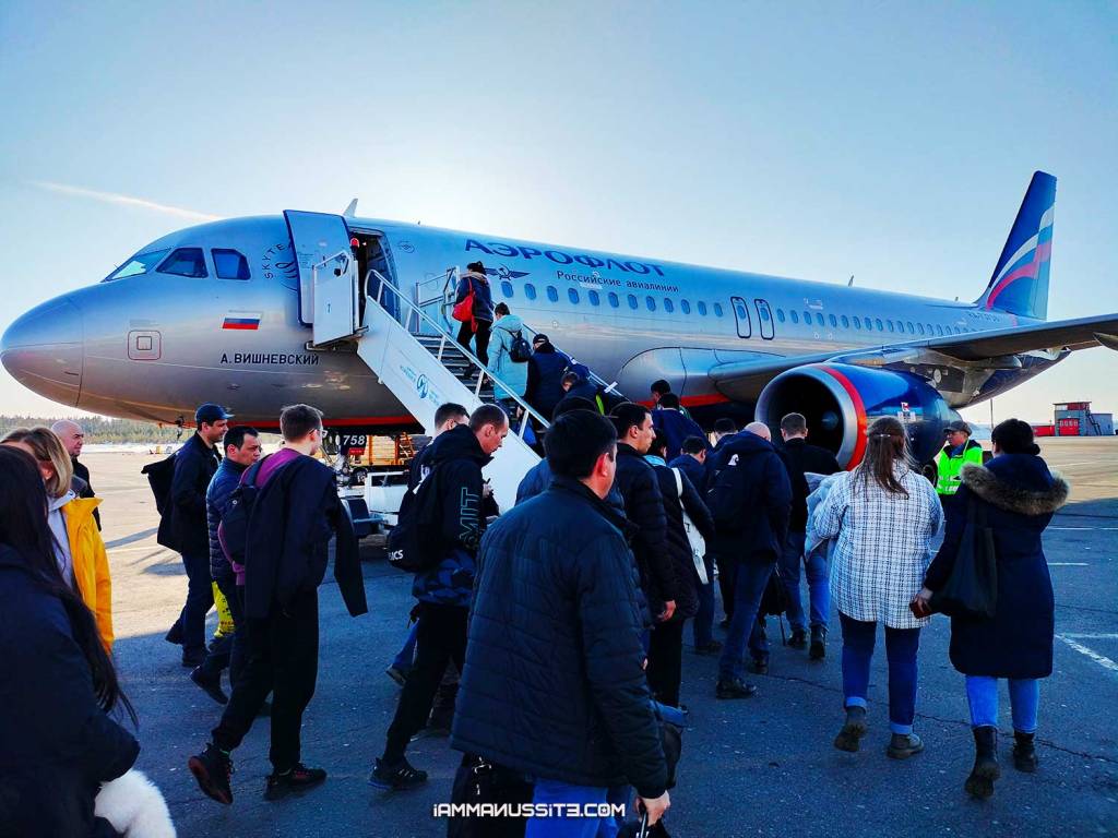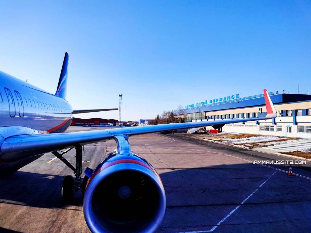 จากมอสโกเมืองหลวงขึ้นไปทางตะวันตกเฉียงเหนือ 1,900 กม. ถ้านั่งรถไฟก็ใช้เวลาทั้งวันทั้งคืนกว่าจะถึง เราเลือกนั่งเครื่องภายในประเทศ ใช้เวลาประมาณ 2 ชม. จากมอสโกก็มาถึงสนามบินเล็กๆของเมืองมูมันสค์ จากอุณหภูมิหนาวน้อยๆ 10°C ที่มอสโก มาเจอกับอุณหภูมิติดลบ มีร่องรอยหิมะให้เห็นตั้งแต่สนามบิน พวกเราจะเที่ยวในแถบนี้ 4 วัน 4 คืน พักอยู่ที่ตัวเมืองมูร์มันสค์ ออกเที่ยวเมืองรอบๆในช่วงกลางวัน แล้วออกล่าแสงเหนือในช่วงกลางคืน >> อ่านเรื่องล่าแสงเหนือที่มูร์มันส์ <<