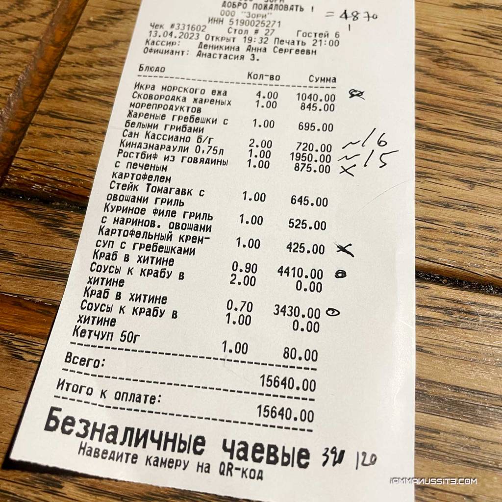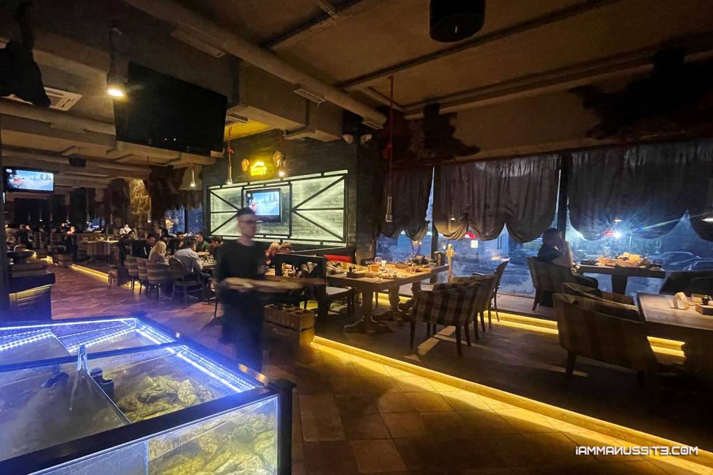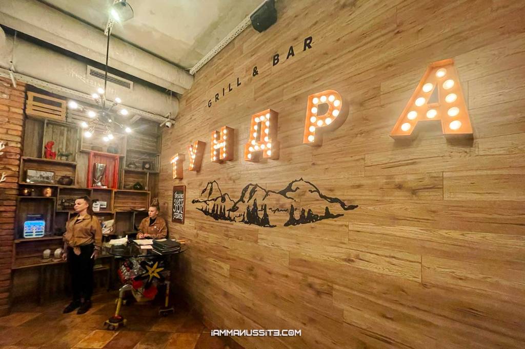 ตอนเย็นเราเดินไปทานร้านอาหารชื่อดังของเมือง Тундра, Grill & Bar ที่หลายๆคนแนะนำ เมนูแนะนำคือสเต็ก และอาหารทะเล อย่าง King Crab หอย กุ้ง ปลา เทียบกับคุณภาพแล้วราคาไม่แพงเลย ความยากลำบากอยู่ที่การสั่งอาหาร เพราะสื่อสารกันยากเพราะไม่มีพนักงานพูดอังกฤษได้เลย แต่น้องน่ารักมาก ต่างคนก็ Google Translate กันไปมา กว่าจะสั่งได้ มึนไปตามๆกัน แต่อร่อยคุ้มค่า แนะนำเลยร้านนี้
