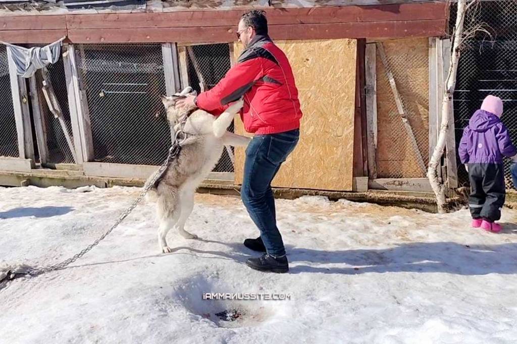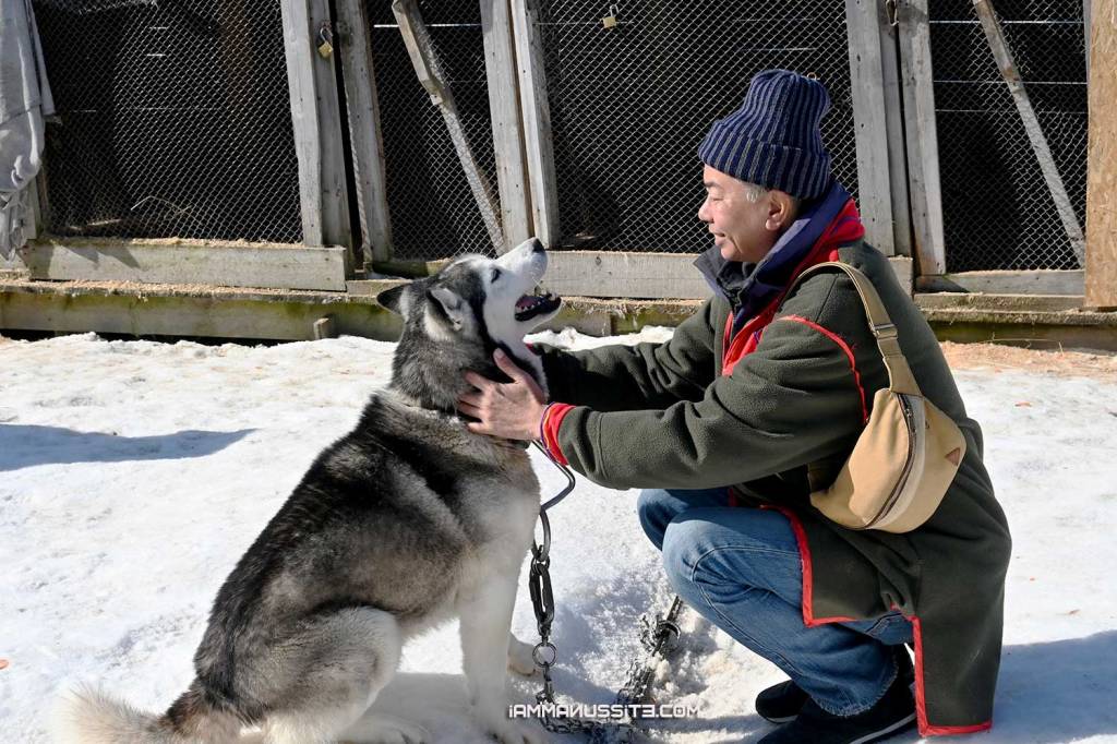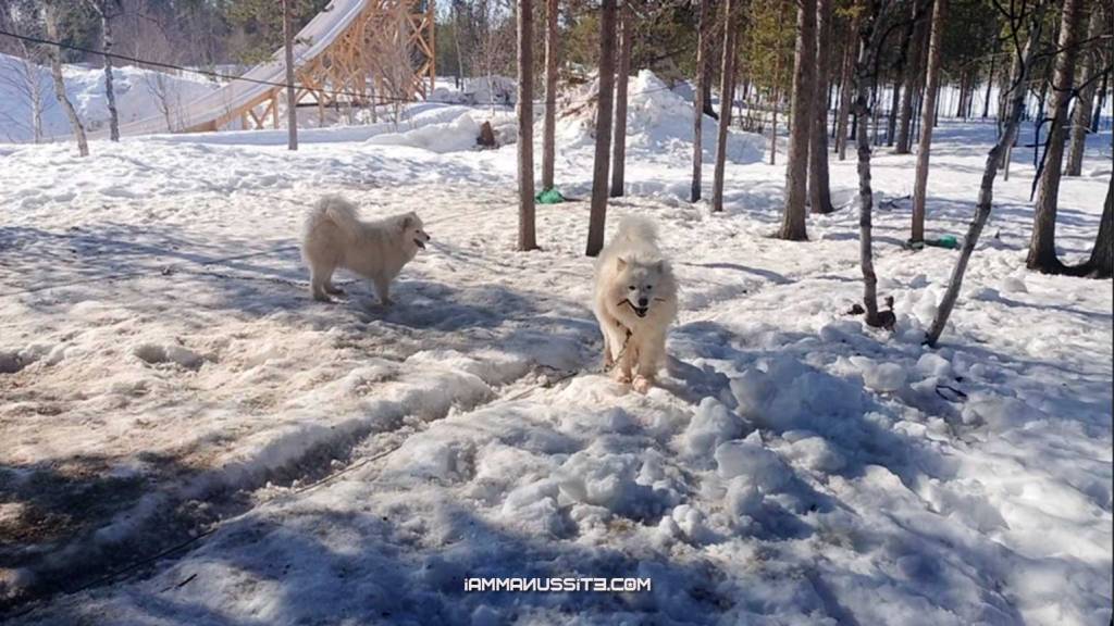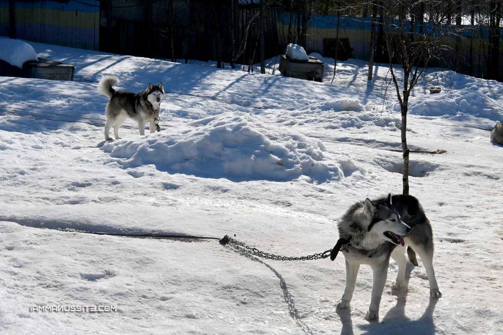 เจ้าฮัสกี้น่ารัก แต่โดนล่ามไว้ ไม่ได้นั่งฮัสกี้ลากเลื่อน ลุงบอกว่าหิมะน้อยเกินไป (ทำไมก็ไม่รู้)