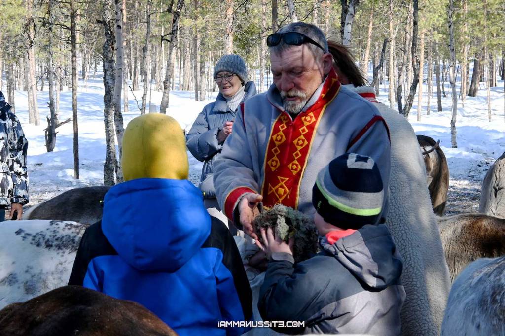 ลุงเอาหญ้าทุนดร้ามาแจก ให้ป้อนเรนเดียร์ หญ้าทุนดร้าเป็นหญ้าชนิดพิเศษเกิดในภูมิประเทศเฉพาะที่เรียกว่าทุ่งทุนดร้า เป็นหญ้าที่เรนเดียร์ชอบ ชาวซามีจะเก็บหญ้าจากตอนฤดูร้อนไว้เป็นอาหารเรนเดียร์ในช่วงฤดูหนาวที่ทุ่งหญ้าจมหิมะหมด