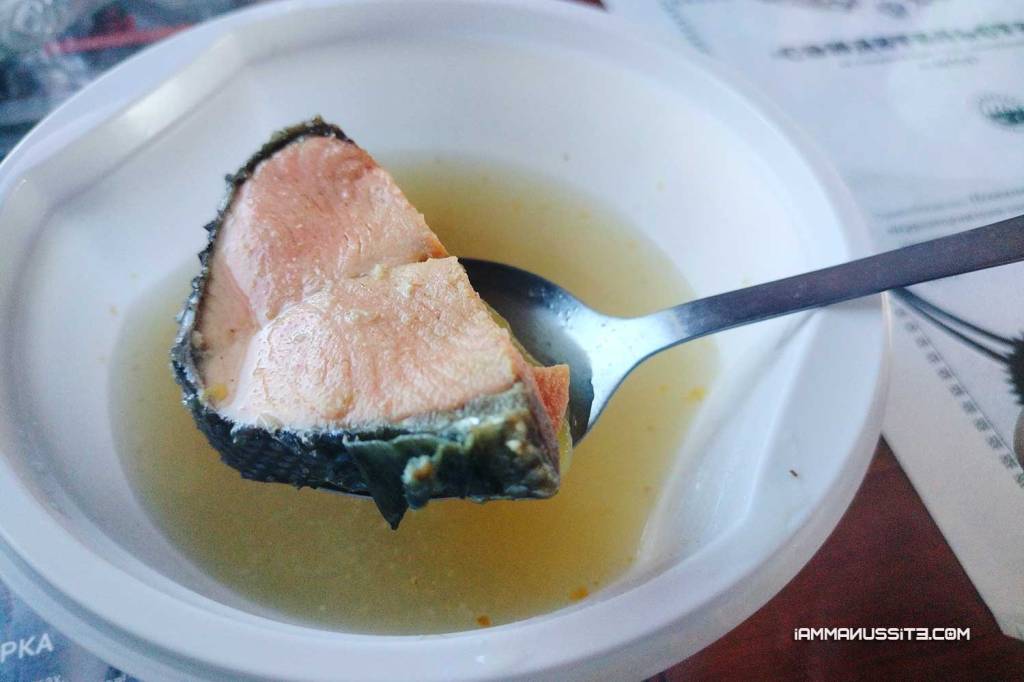 อาหารเที่ยงรวมในค่าเข้าแล้ว มื้อนี้มีซุปปลา เนื้อกวางเรนเดียร์ผัด กินกับช้าว รู้สึกแปลกพิลึก เพิ่งให้อาหารกันมาหมาดๆ มากินกันซะแล้ว