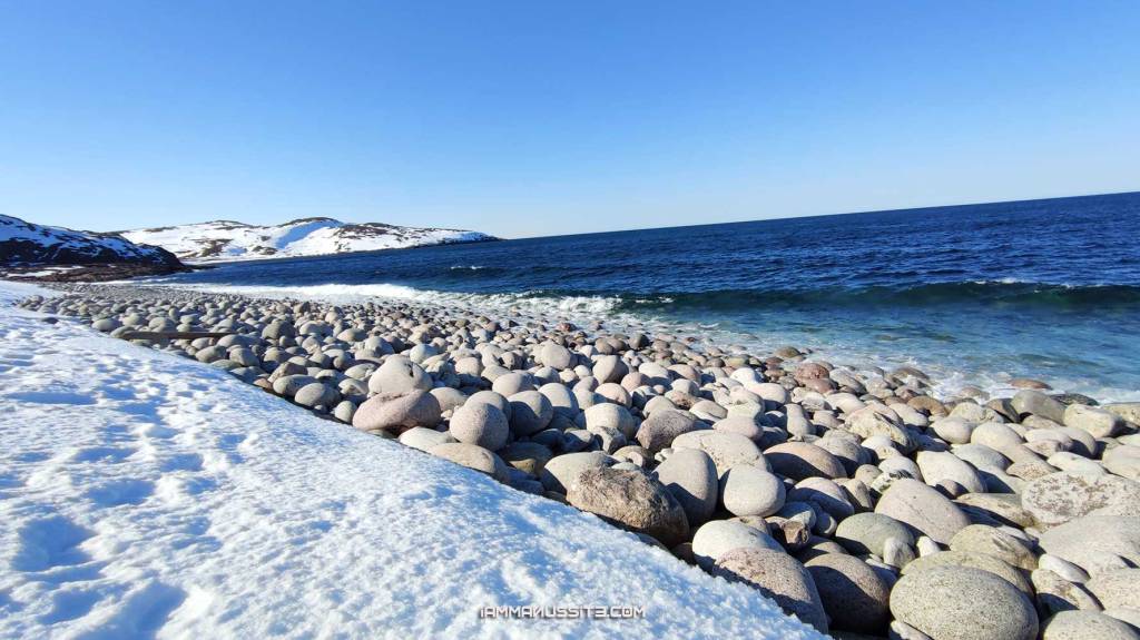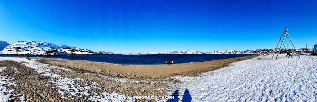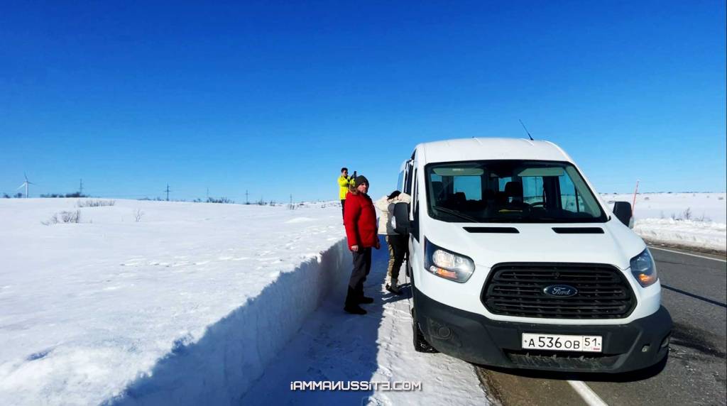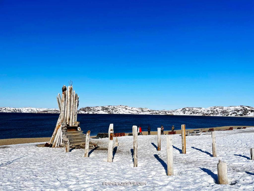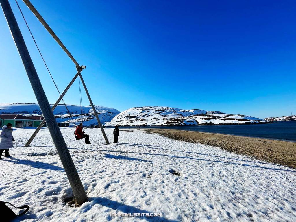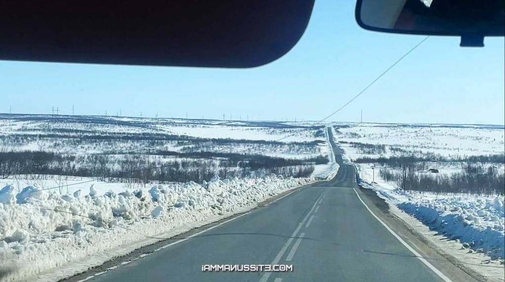 Day trip อีกวันที่ต้องนั่งรถออกจากตัวเมืองมูร์มันสค์ไป 140 กม.ไปหมู่บ้านชาวประมงทางเหนือขึ้นไปอีก เทอร์ริเบอร์กาตั้งอยู่ริม Barents Sea และเชื่อมต่อกับ Arctic Ocean ต้องนั่งรถราว 2 ชม.กว่าๆ ระหว่างทางไกด์จอดรถให้ลงไปลุยหิมะข้างทางกันได้ตามแต่จะบอก ชอบตรงไหนจอดตรงนั้น เพิ่งเคยเจอหิมะสูงเป็นเมตร จากที่รถกวาดหิมะลุยเปิดทางถนนไว้ให้ ต้องปีนกำแพงหิมะกันขึ้นไป แถบนี้ในฤดูร้อนจะเป็นทุ่งหญ้าทุนดร้า หญ้าที่เป็นอาหารโปรดของกวางเรนเดียร์ ตอนนี้มีแต่หิมะสุดลูกหูลูกตา ในเมืองมูร์มันสค์เริ่มละลายแล้ว แต่แถบนี้ยังไม่ละลาย