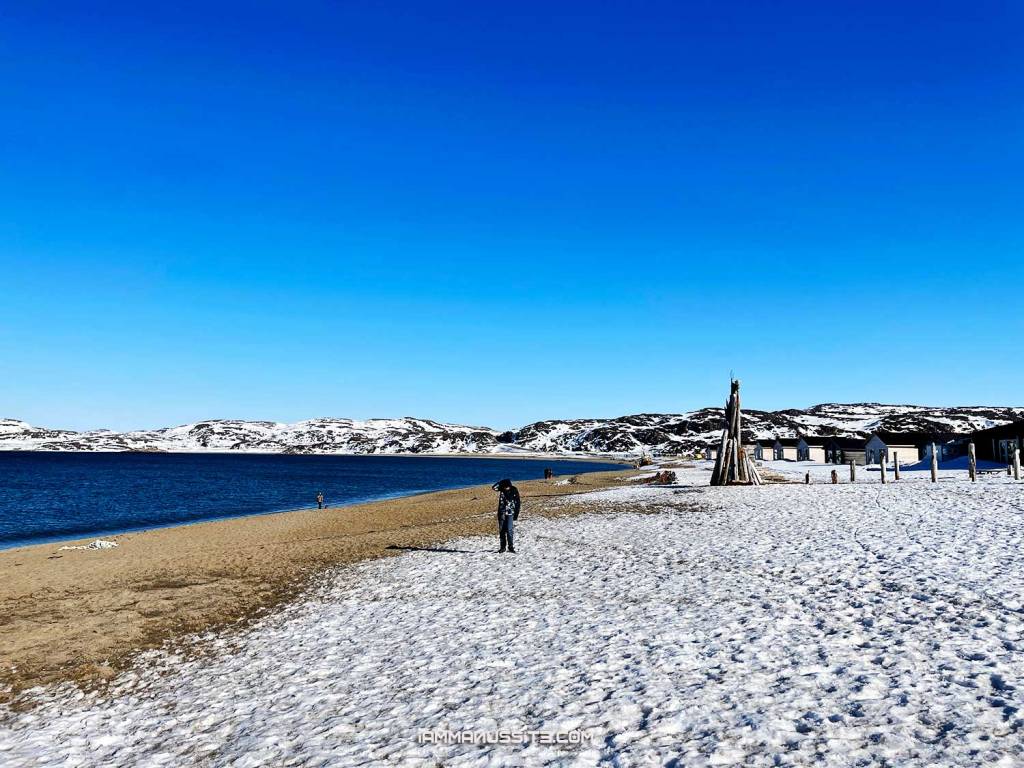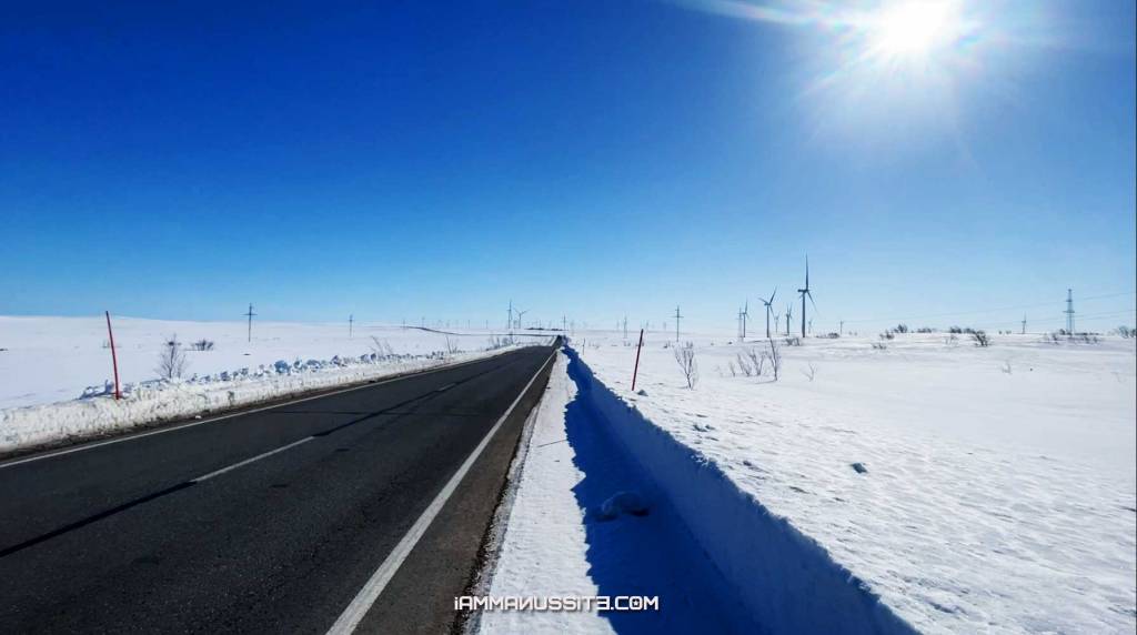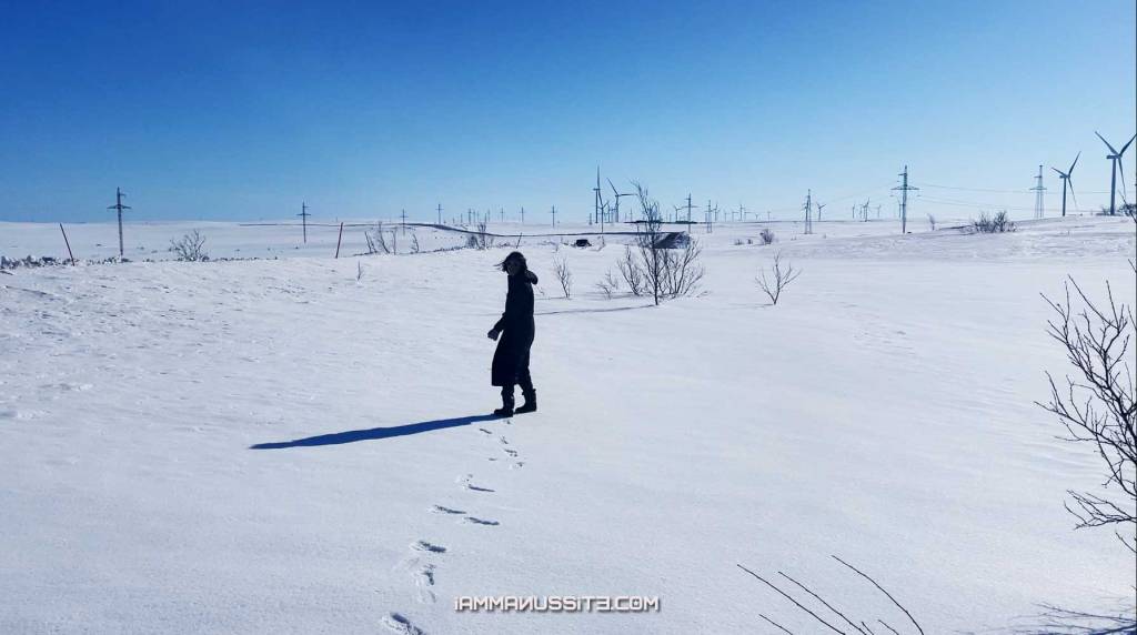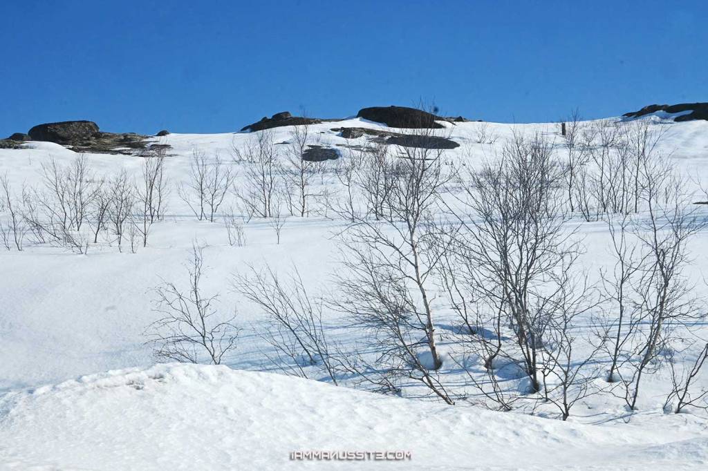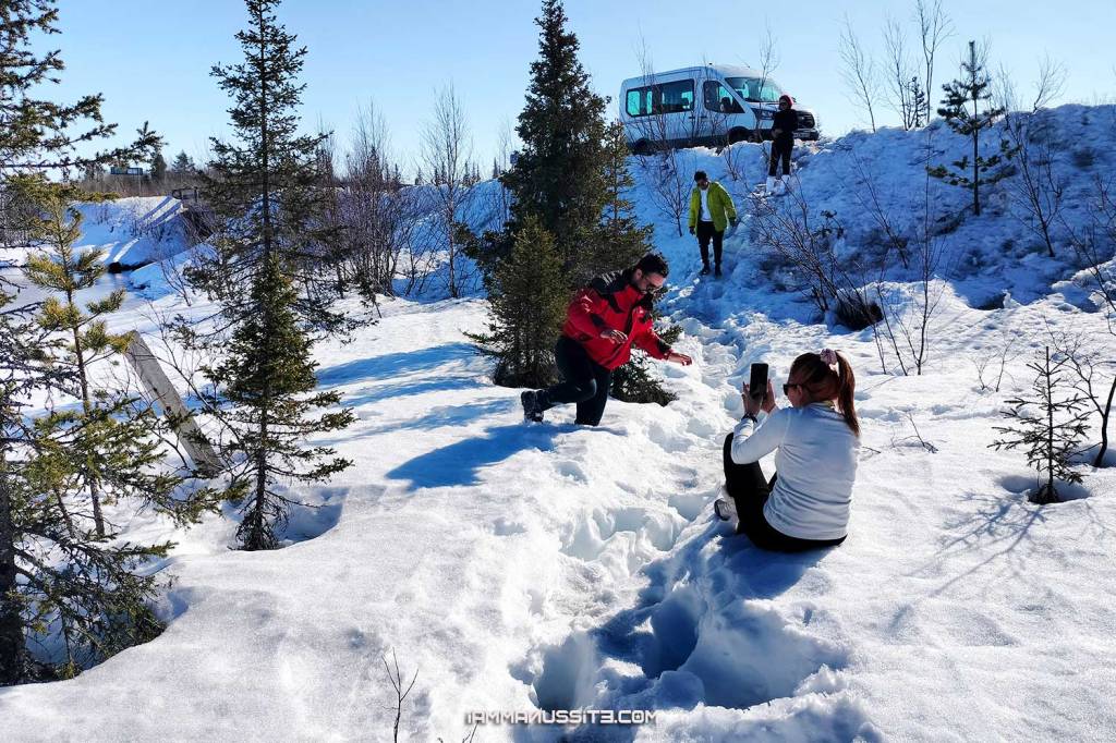 Day trip อีกวันที่ต้องนั่งรถออกจากตัวเมืองมูร์มันสค์ไป 140 กม.ไปหมู่บ้านชาวประมงทางเหนือขึ้นไปอีก เทอร์ริเบอร์กาตั้งอยู่ริม Barents Sea และเชื่อมต่อกับ Arctic Ocean ต้องนั่งรถราว 2 ชม.กว่าๆ ระหว่างทางไกด์จอดรถให้ลงไปลุยหิมะข้างทางกันได้ตามแต่จะบอก ชอบตรงไหนจอดตรงนั้น เพิ่งเคยเจอหิมะสูงเป็นเมตร จากที่รถกวาดหิมะลุยเปิดทางถนนไว้ให้ ต้องปีนกำแพงหิมะกันขึ้นไป แถบนี้ในฤดูร้อนจะเป็นทุ่งหญ้าทุนดร้า หญ้าที่เป็นอาหารโปรดของกวางเรนเดียร์ ตอนนี้มีแต่หิมะสุดลูกหูลูกตา ในเมืองมูร์มันสค์เริ่มละลายแล้ว แต่แถบนี้ยังไม่ละลาย
