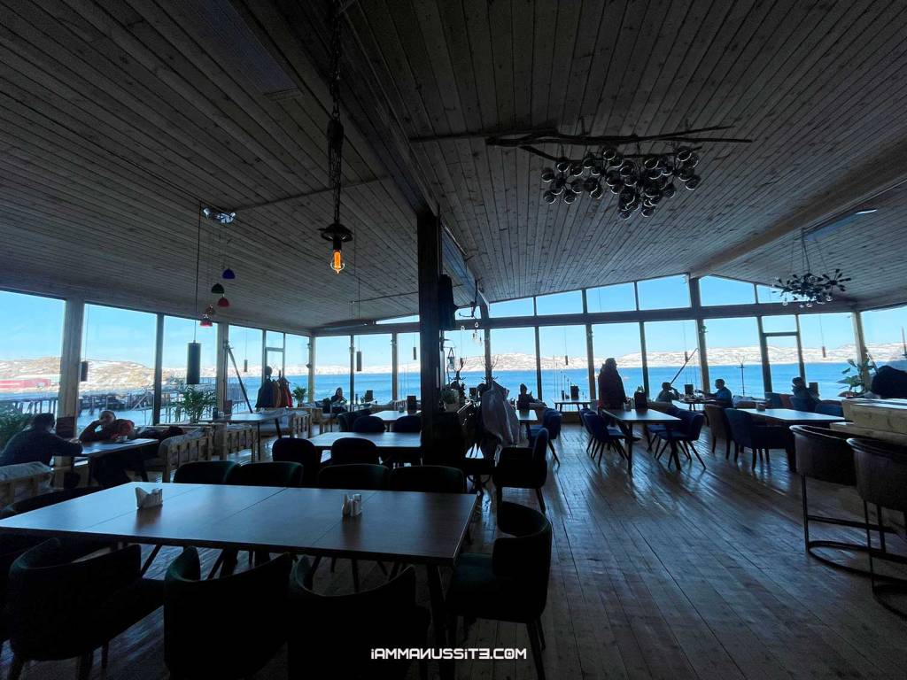 กลับเข้าเมืองมาชมวิว ชมหาด แวะร้านคาเฟ๋ที่ตกใจมากว่าเมืองเล็กๆแค่ 20 ครัวเรือนแต่มีร้านใหญ่ๆสวยเก๋แบบนี้ด้วย เดนิสว่าคนมาเที่ยวที่นี่กันเยอะ บางคนมาปีนเขา บางคนมาล่องเรือ มาดำน้ำ มาตกปลา มาสกี อีกกิจกรรมคือมาดูวาฬ แถบนี้มีวาฬให้ได้เห็นบ่อยมาก บางทียืนอยู่บนฝั่งก็เห็นได้ด้วยซ้ำ ไกด์บอก