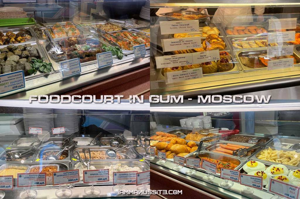 เคยอ่านรีวิวเจอว่าในห้าง GUM มี Food court อยู่ชั้นบน ก็เลยเดินไปหา เห็นคนต่อแถวกันยาวออกมานอกร้าน น่าสนใจมาก ต้องถูกและดีแน่อน เลยไปต่อแถวกับเขาด้วย เป็นอาหารถาด ก็จิ้มๆเอาตามต้องการ อ่านไม่ออกว่าอะไรบ้าง ถามแค่ว่าอันนี้ เนื้อ หมู ไก่ หรือปลา คนตักก็ไม่เข้าใจเลย ดังนั้นจิ้มมั่วเอา อยากหยิบอะไรก็หยิบ มีน้ำ มีขนม มีซุป สลัด ข้าว ครบทุกอย่าง เราเลือกมาแค่ในรูป คิดเงินมาอย่างอึ้ง 1740 รูเบิล!! คือ 900 บาท!! อิ่มแล้วลองเดินดูใน Food court มี 3 ร้าน อีก 2 ร้าน ดูราคาน่าจะถูกกว่าหน่อย แต่ไม่ค่อยมีคนกินแฮะ ส่วนร้านแรกนั่นคนต่อคิวยาวมากน่าจะอร่อยสุด(มั้ง) สรุปว่าทุกอย่างในห้างนี้คือแพงมาก ค่าเข้าห้องน้ำยัง 50 รูเบิลเลย อาหารไปหากินตามร้านข้างนอกดีกว่า ไม่ได้ถูกกว่าแต่ได้อาหารดีกว่า