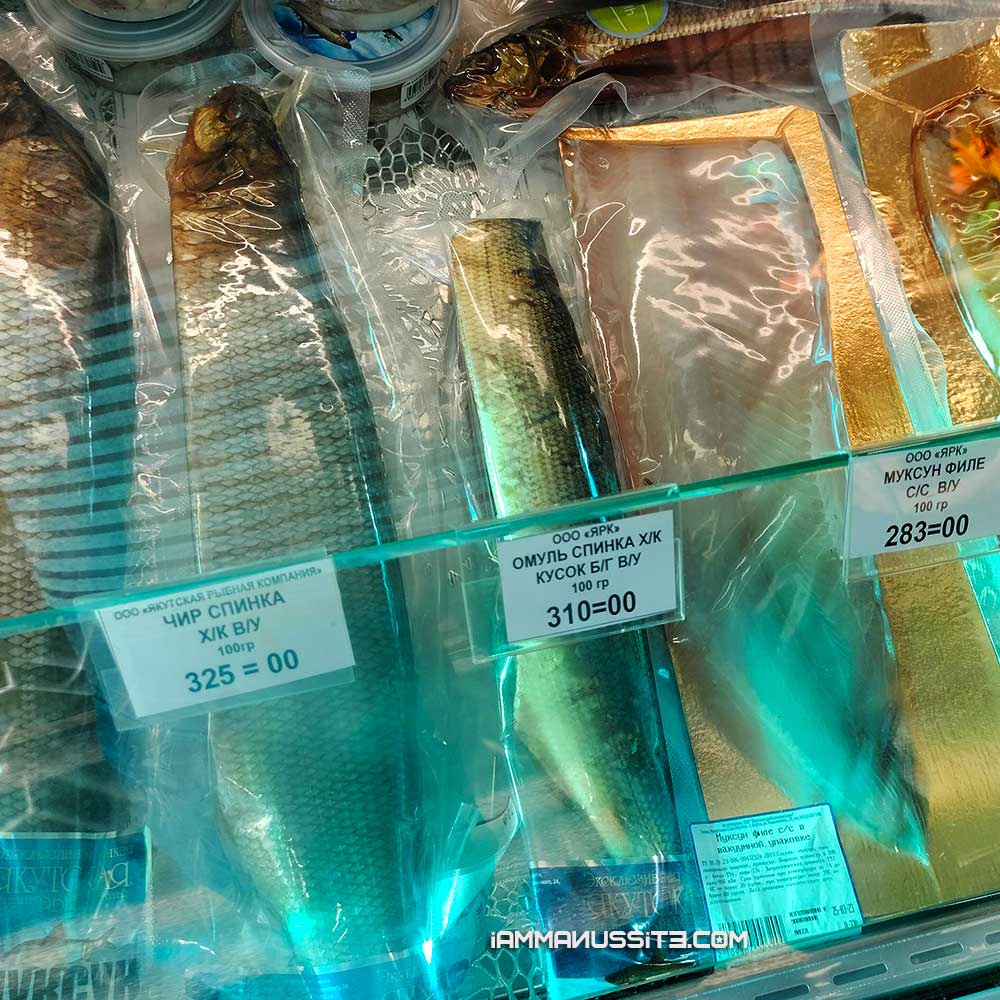 เนื่องจากรัสเซียตอนเหนือติดทะเล อาหารทะเลจึงเป็นของฝากอีกอย่างที่เห็นขายในสนามบิน ครั้นจะแบกปลากลับมาก็ไม่ได้ติดอกติดใจขนาดนั้น กลับมากินปลาสลิดบางบ่อบ้านเราดีกว่า นอกจากปลาแล้วก็มีคาเวียร์ที่มันราคาถูกเมื่อเทียบกับที่เห็นในไทย แต่เราไม่เคยกิน ก็ไม่รู้ว่ามันอร่อยเท่ายี่ห้อดังๆของยุโรปหรือเปล่า แต่ใครอยากซื้อของหรูๆมาฝากเพื่อนก็จัดมาได้แถบมูร์มันสค์มีขายเยอะแยะ