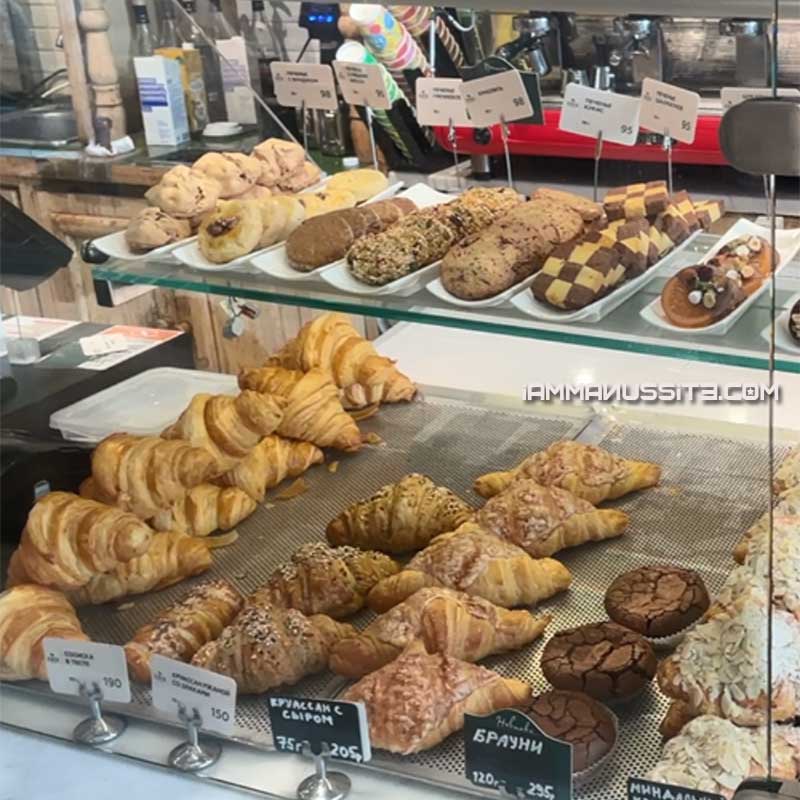 ร้านอาหารในมอสโควส่วนมากเปิดสาย 10 หรือ 11 โมง แม้จะเป็นร้านคาเฟ่หรือเบเกอรี่ เราจองโรงแรมแบบไม่รวมอาหารเช้าเลยต้องออกมาหาทานข้างนอก ร้านนี้ Search หามาล่วงหน้า อยู่ใกล้ๆ Red Square พอดี เปิด 7 โมงเช้า เป็นร้านมีหลายสาขาทั่วมอสโคว ขายชา กาแฟ ขนมปัง อาหารเช้า คนทำงานเข้ามาซื้อกาแฟ มากินขนมปังก่อนเข้าทำงานกันเยอะ ฝากท้องยามเช้าได้