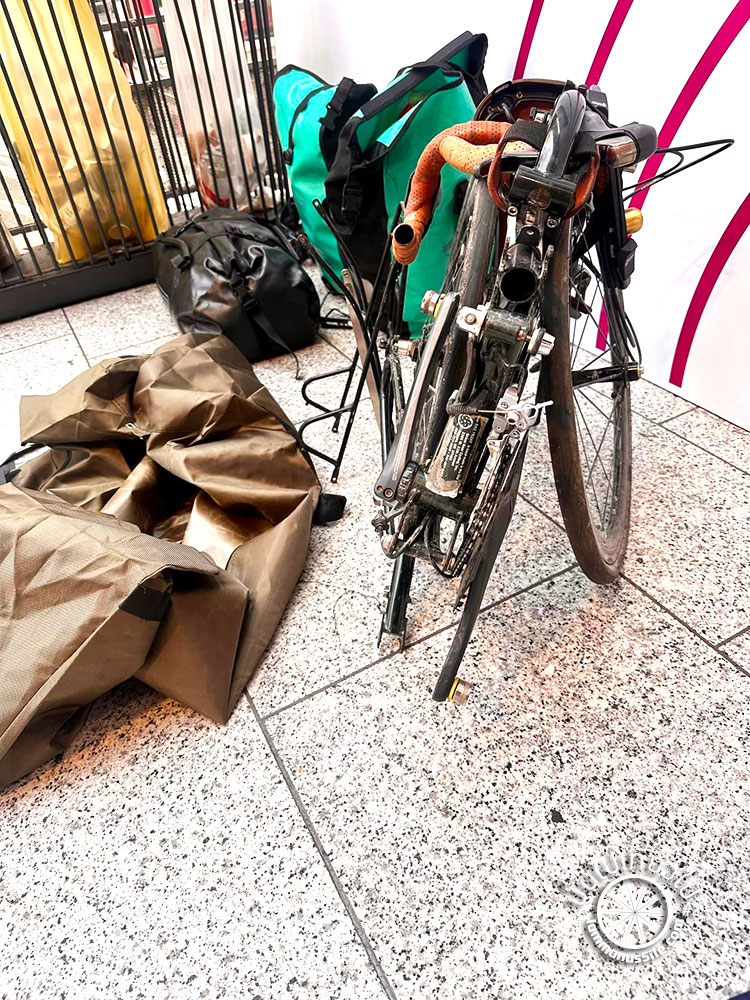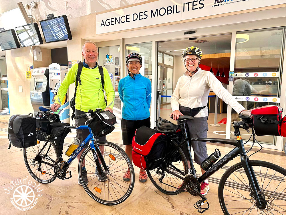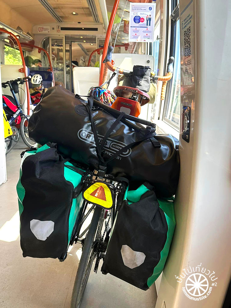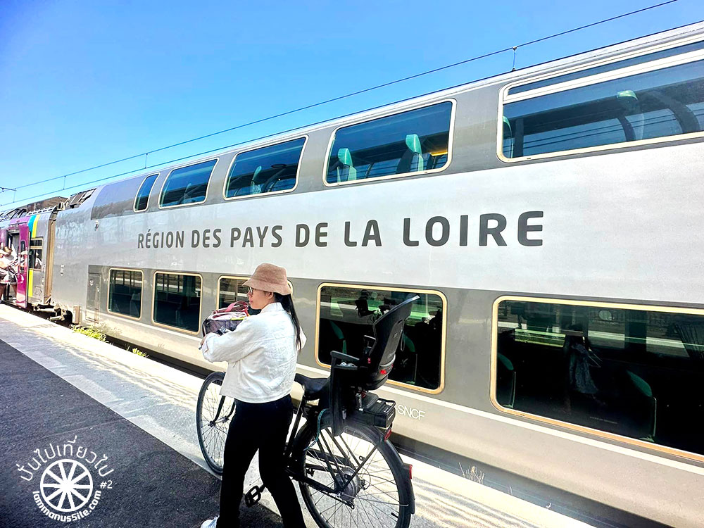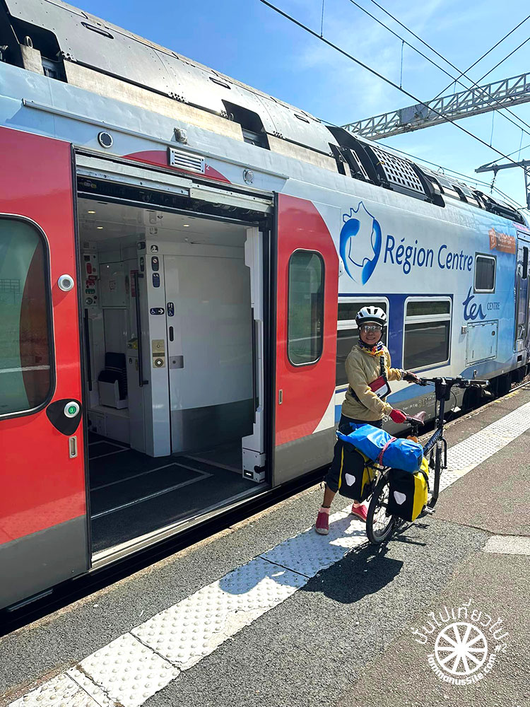 รถไฟในแถบลุ่มแม่น้ำลัวร์ Loire Valley มีตู้จักรยานที่ใหญ่กว้างขวาง แต่ตอนขากลับเจอขบวนที่ไม่มีตู้เฉพาะจักรยาน นักปั่นที่พยายามเอาจักรยานขึ้นรถไฟก็ช่วยเหลือกันดีให้ทุกคนได้ขึ้นมา