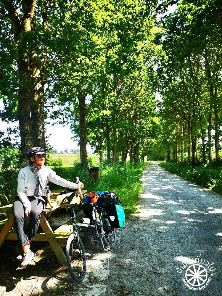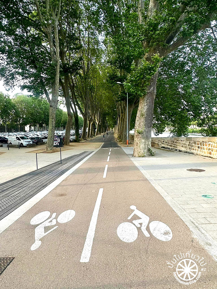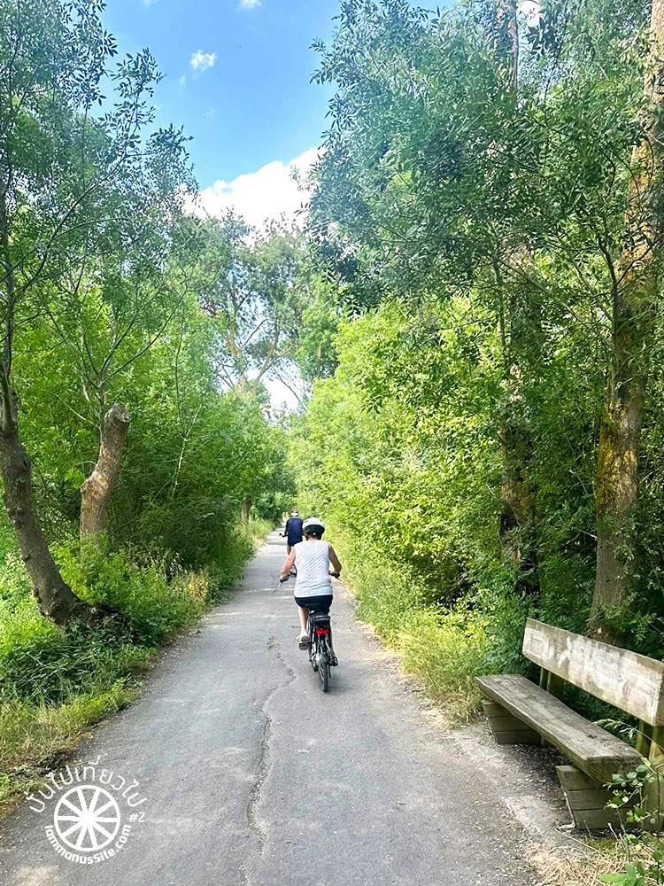 ระหว่างทางจากเมือง Saumur ไปเมือง Tours เป็น Greenway ร่มรื่น เส้นทางดีมาก แต่จะมีช่วงที่ปั่นบนถนนเลียบแม่น้ำ Loire ยาวประมาณ 15 กิโลเมตร ไม่มี Greenway เลย โชคดีวันนี้อากาศไม่ร้อนมาก และลมไม่แรง